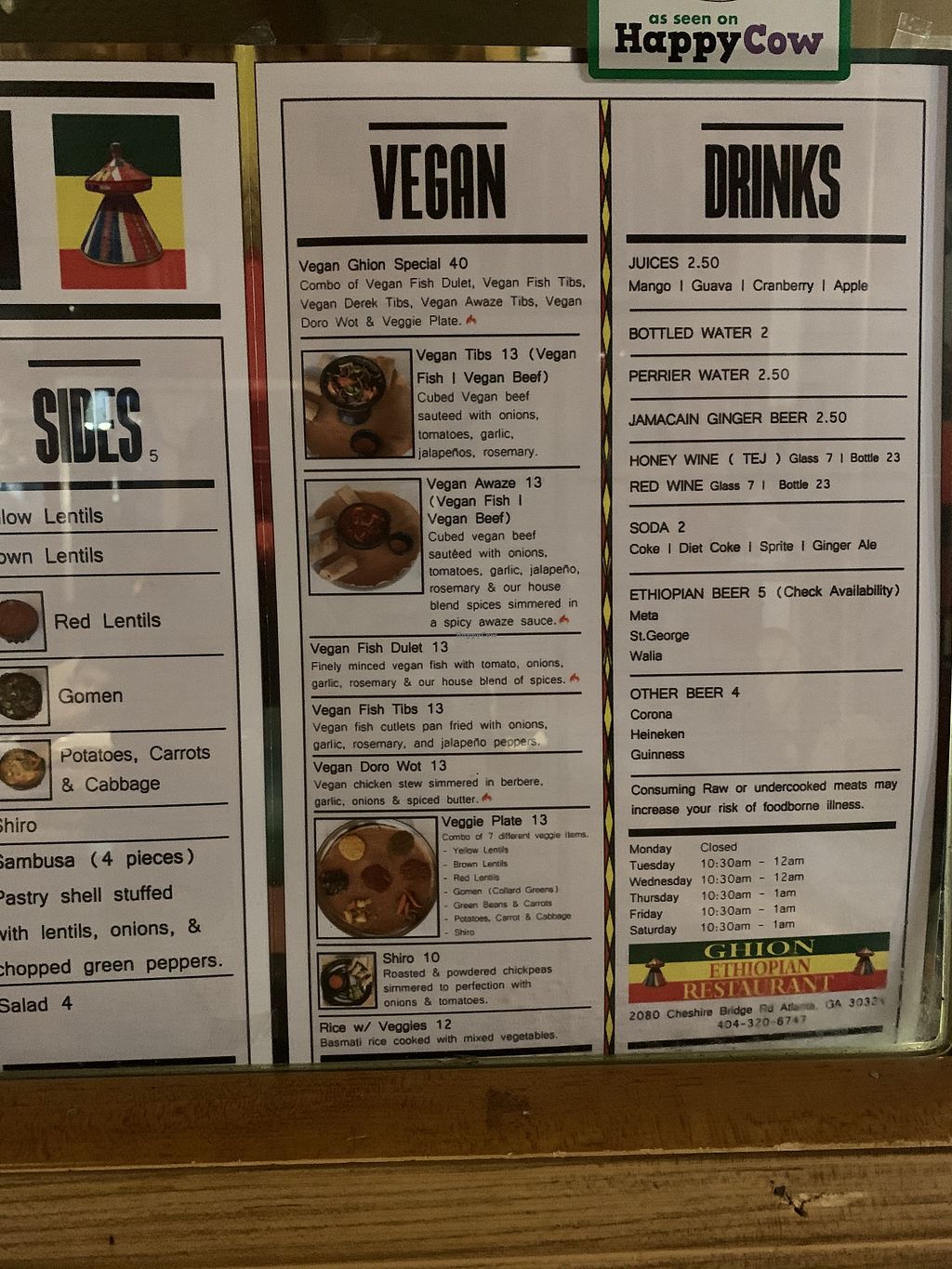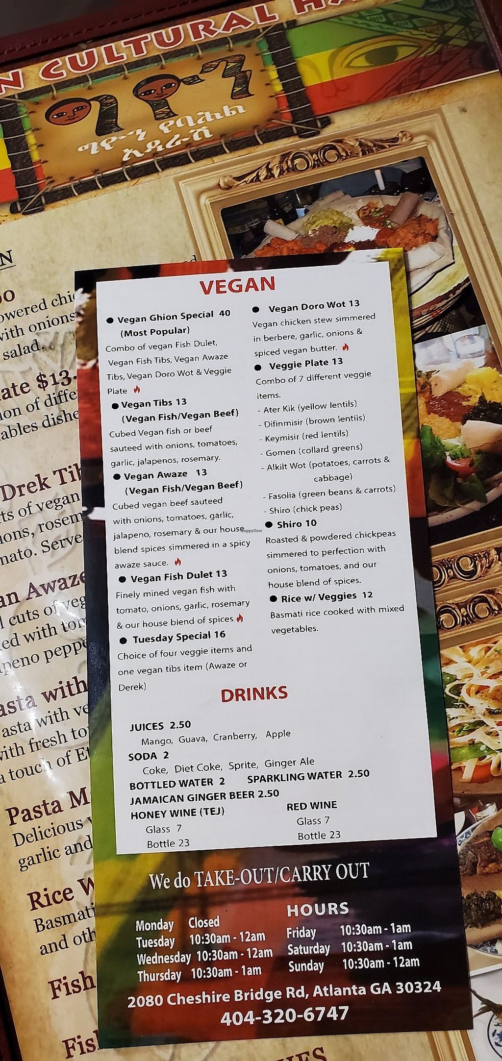 This place is so good and is fantastic takeout. They have an entire vegan platter with all the ethiopian veggie sides we know and love plus a bunch of normally meat based dishes made with vegan substitutes (I think they are gardein). It has pretty much saved my life during covid. The owner is extremely kind and it is always amazing.