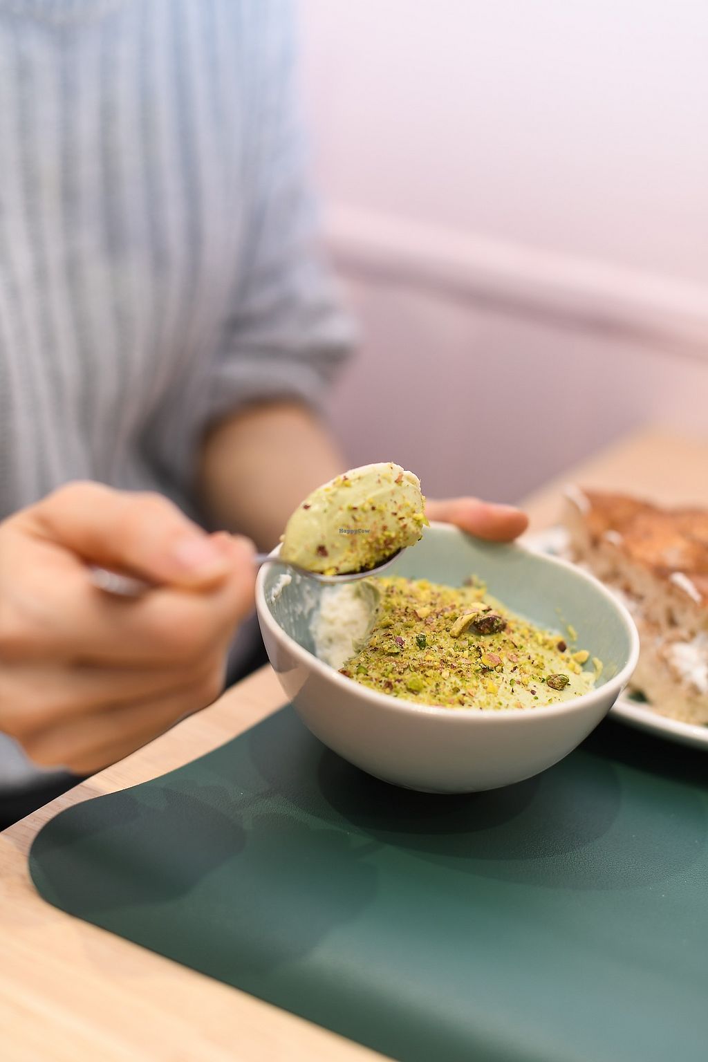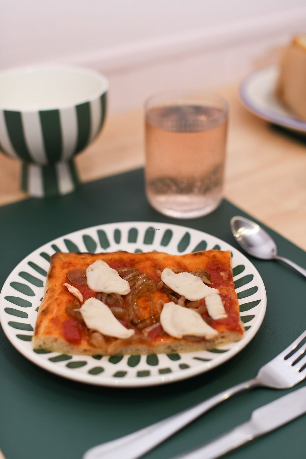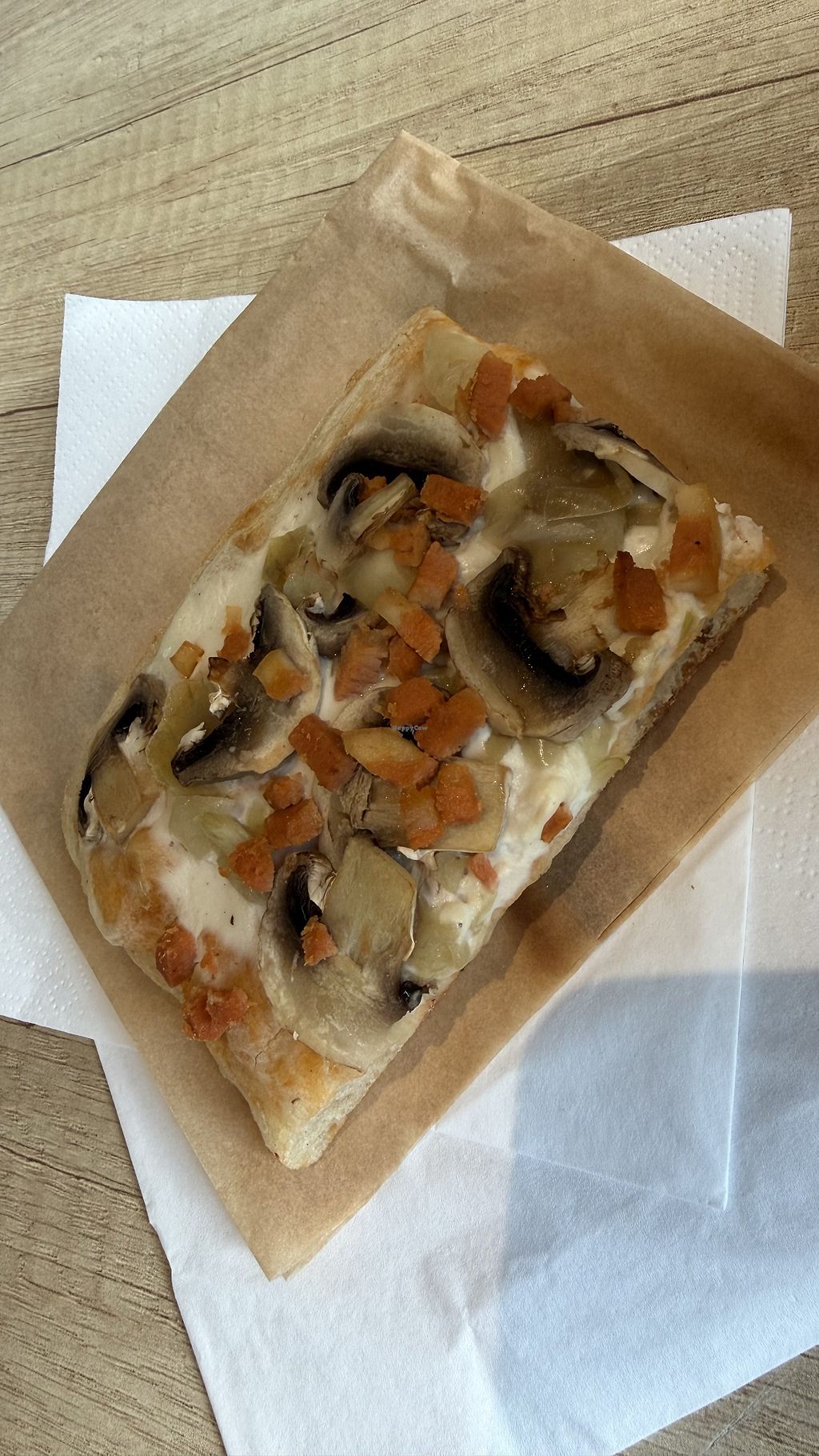 An all-vegan Italian street food vendor. The menu includes focaccia sandwiches, pizza al taglio (pizza by the slice), sweet focaccia, and panna cotta. Open Mon-Tue 12:00-14:30, Thu-Fri 12:00-14:30.