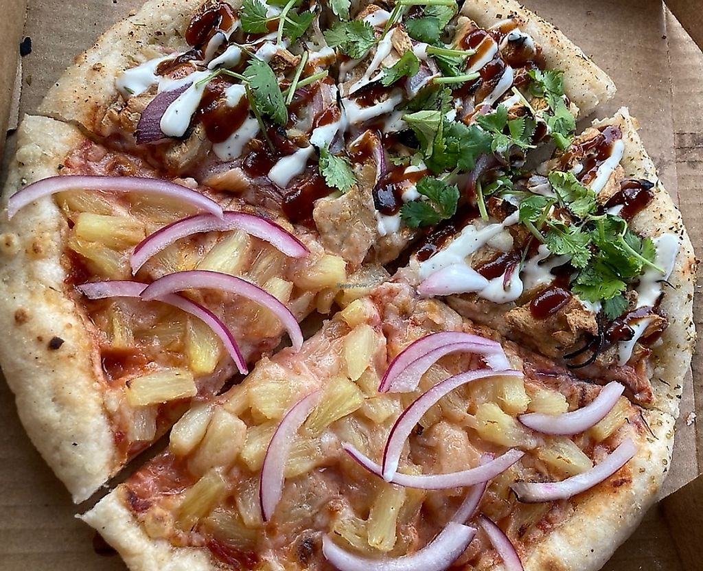 Maui Wowie Red sauce, Vegan Bacon, Pineapple, Pickled Red Onions, Vega…