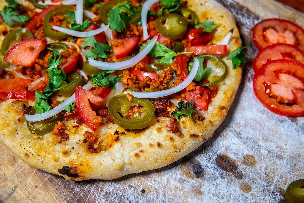 Trejo Chorizo Garlic/olive oil base, vegan chorizo, jalapenos, onion, …