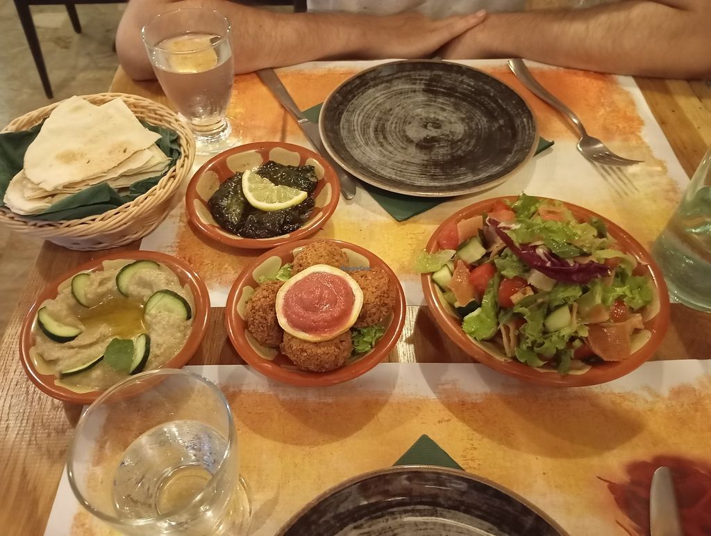 Hummus, taboulé, warak inab, falafel and baba ghanoush