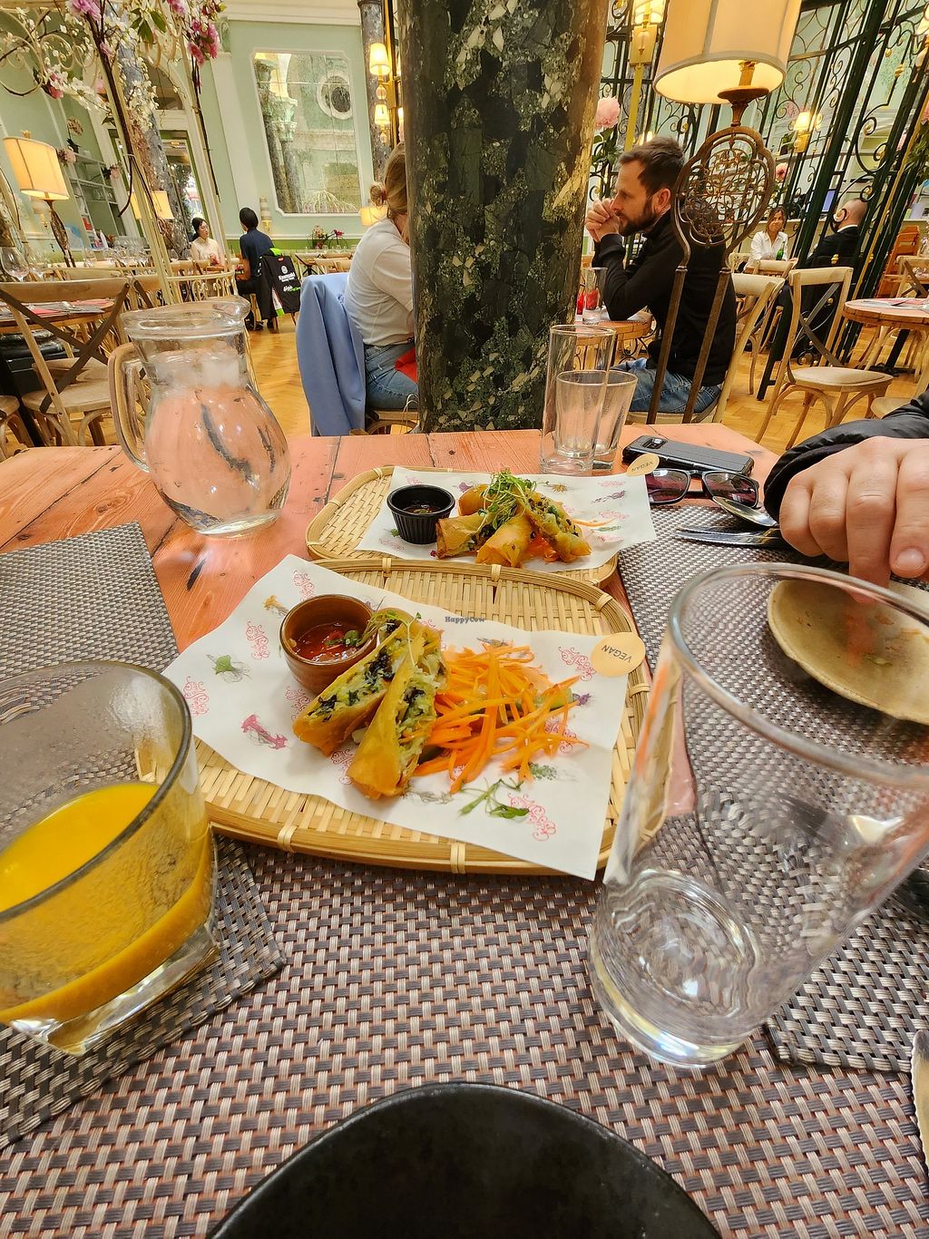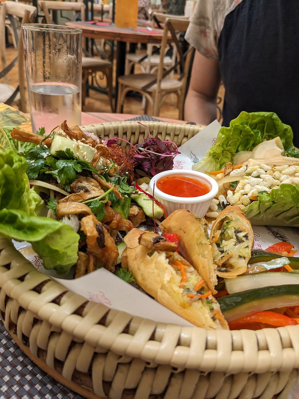 I had the vegan tapas for lunch. Coconut curry, stir fry, rice and spring rolls. The dishes were good but a little to spicy for me although they were only medium level of spiciness. Next time I’ll try something else. Beautiful location inside the restaurant.