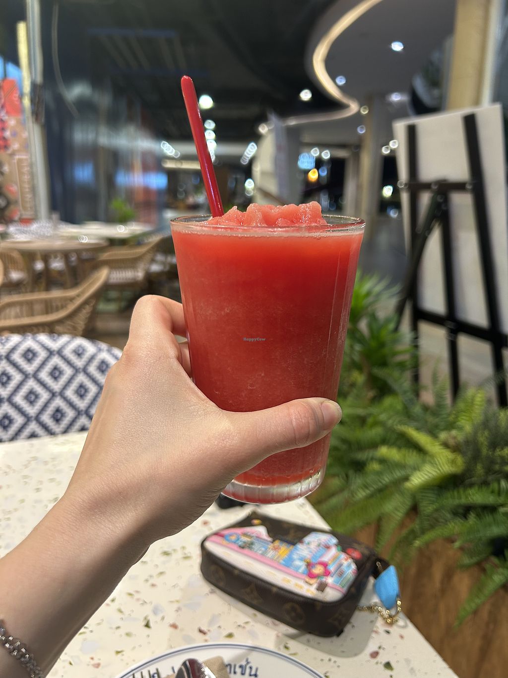 Watermelon smoothie (100% watermelon, fun to eat with the spoon they g…