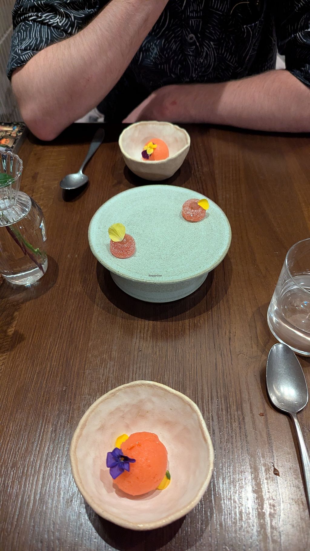 The food was really creative and definitely Michelin quality. The service was top notch & friendly. Unfortunately I thought the drinks pairing was lacklustre. I would definitely come again, but next time maybe just order 1 or 2 drinks off the drinks menu, instead of having the pairing. The sommelier was really nice though and had good explanations! I just think they didn't have vegan red wine, so replaced it with homemade infusions - obviously didn't quite do the trick, as we paid the full price.