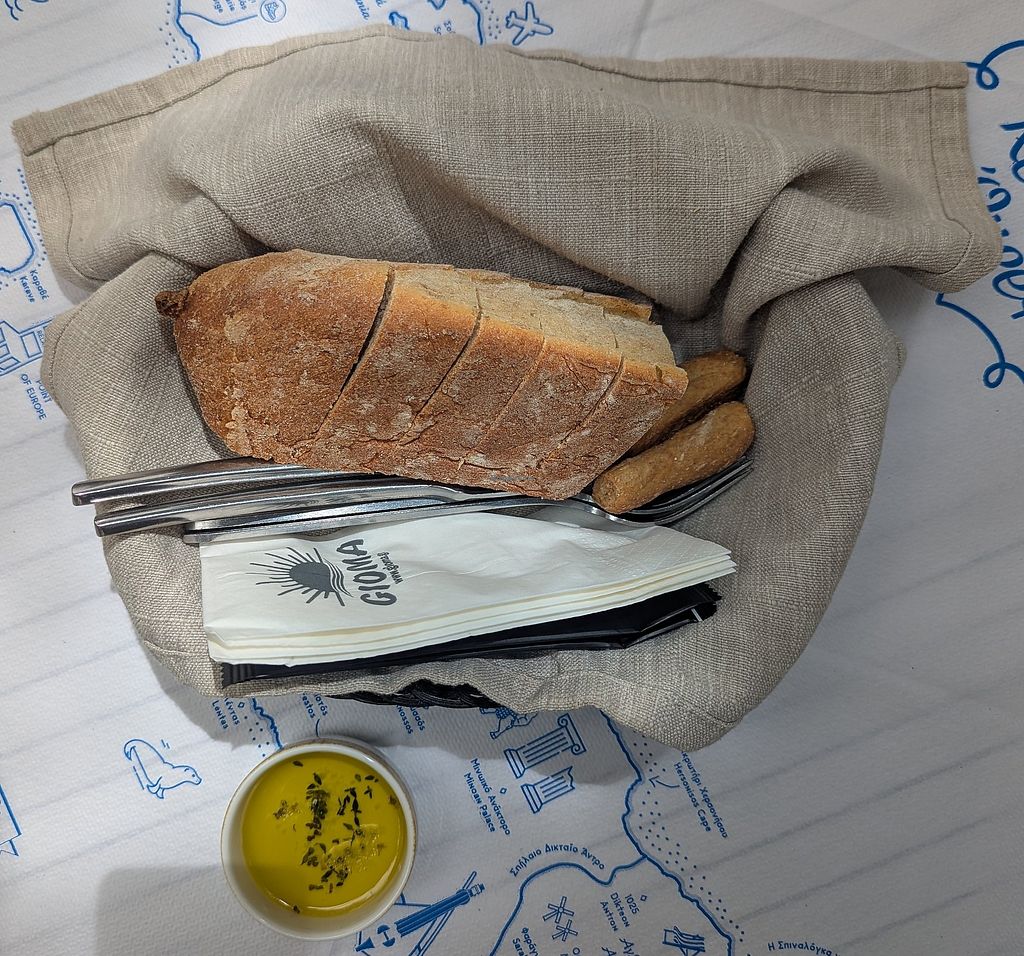 We found this gem by chance while exploring the Libyan coast line of Crete. It looked super charming and welcoming from the outside so we gave it a chance. Spoiler alert: we couldn't gush more about this lovely spot with it's seating area next to the sea. It's so beautiful and the staff is amazingly friendly and helpful. We wanted to have a light lunch and chose several starters and white wine. We had Humus, Fava, stuffed wine leaves, stuffed zucchini flowers and the eggplant. It all came with homemade white bread. The owner was lovely and made sure the food was vegan. Couldn't be happier or more satisfied by these traditional greek antipasti.