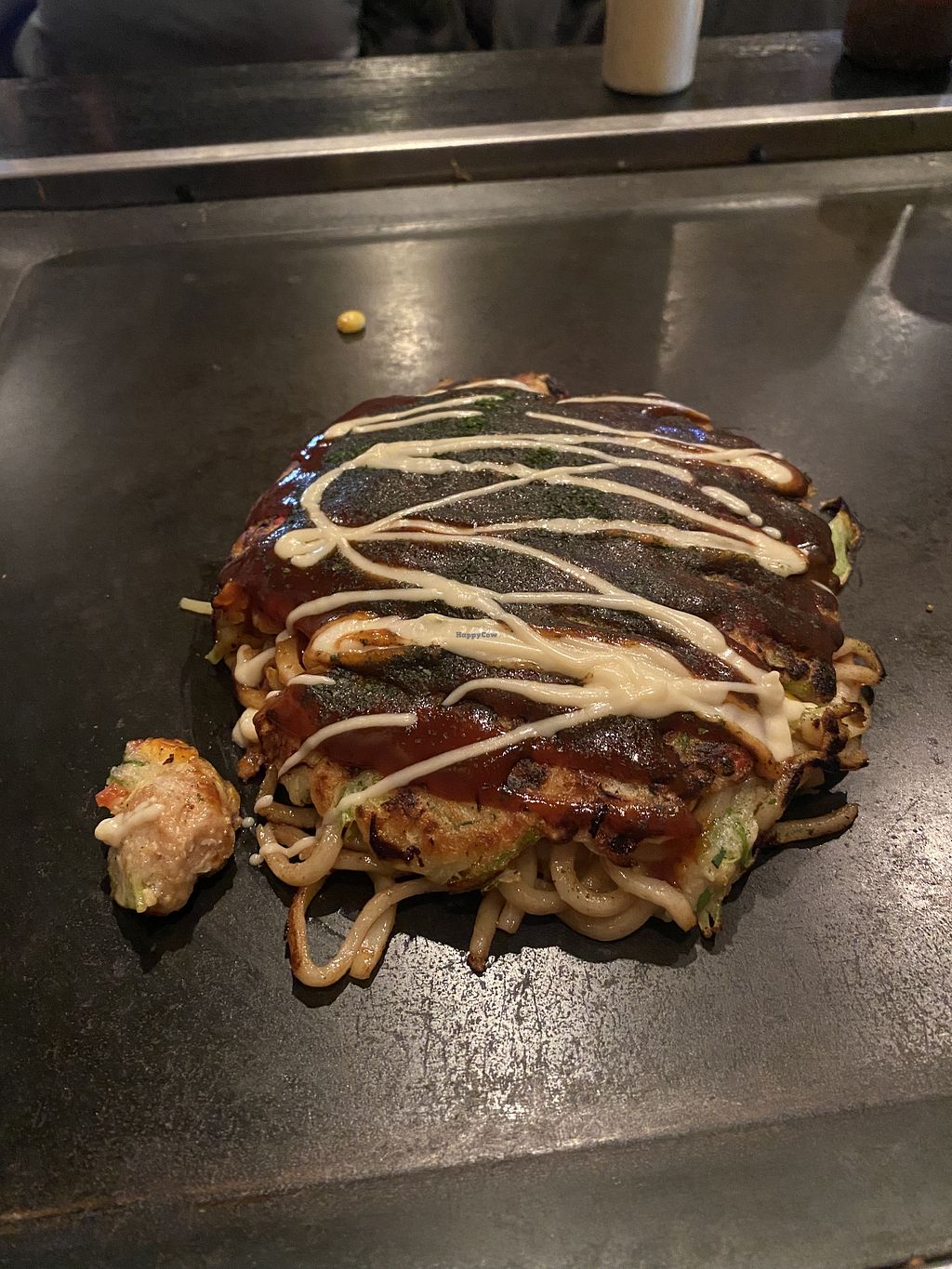 Really good okonomiyaki, there are few vegan options, the “soy meat okonomiyaki” was very good