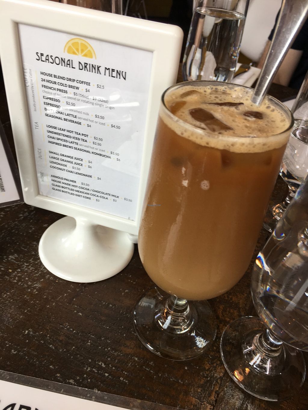 Read moreWhy go to Girard when you're veg? Well, if you have friends and family who are tired of eating out with you at veg-only establishments, this is a good middle ground. They have freshly squeezed orange juice and almond milk for your coffee/espresso beverages. There are seasonal fruits dressed up like a melon salad with lime, basil and pepper, or grapefruit charred with vanilla sugar. The breakfast potatoes are so good and like everything else, they are made to order. So bring your patience and maybe your own champagne to make mimosas.