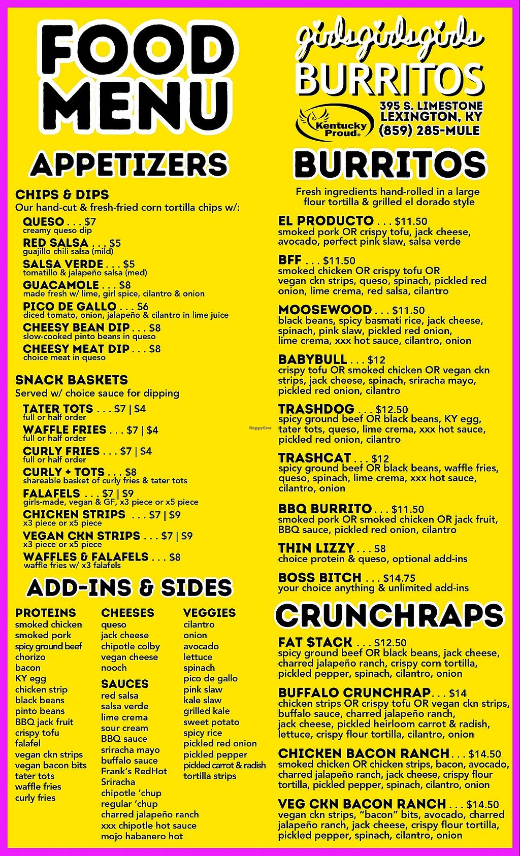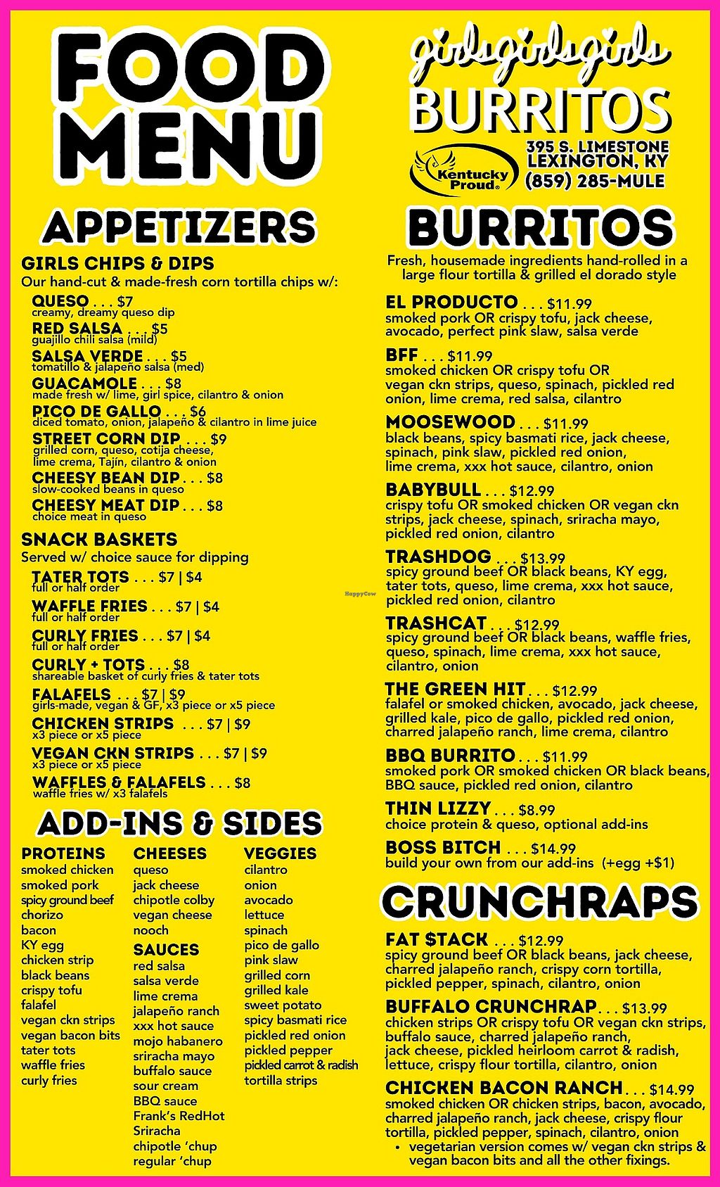 We stopped in Lexington for lunch @girlsgirlsgirlsburritos and we are glad we did! We split a build your own burrito with crispy tofu, sweet potato, pico de gallo, vegan cheese, lettuce, chipotle ketchup, and avocado. So delicious! And great service too. He threw in a bag of their tortilla chips which were fabulous.