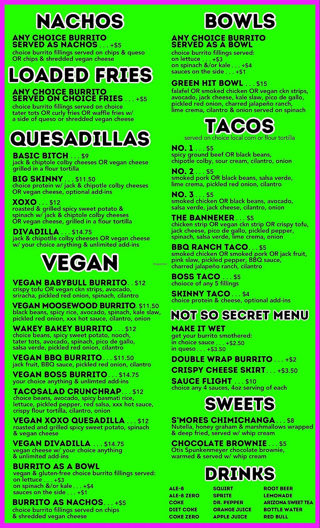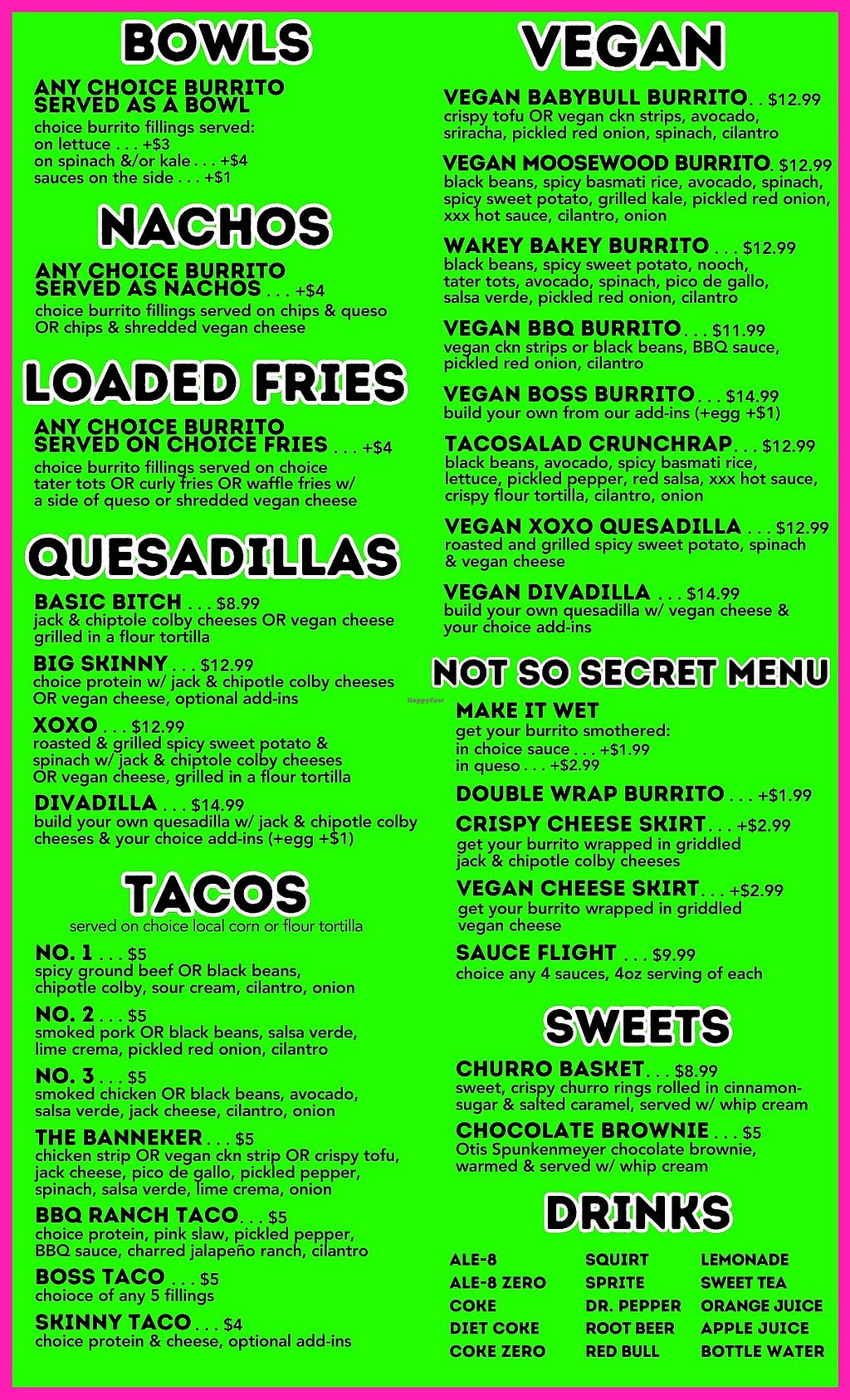 Vegan options are front and center here, top of menu. They obviously know we be flockin’!