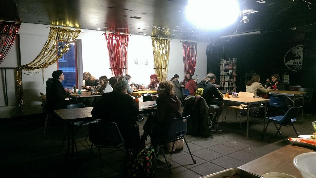 Weekly vegan volunteer run cafe featuring a variety of cuisines, from Mexican to Jamaican and everything in between. Sweet treats every week, cookies, cake, traybakes etc. A variety of teas available, plus coffee and a bring your own policy if you fancy a tipple with dinner! Informal friendly atmosphere, people are welcome to bring instruments and have a jam. Children also welcome, though the cafe is up a flight of stairs - volunteers can help with prams if needed! Open Wednesday evenings operating a pay what you like policy to remain inclusive for people of all budgets.
