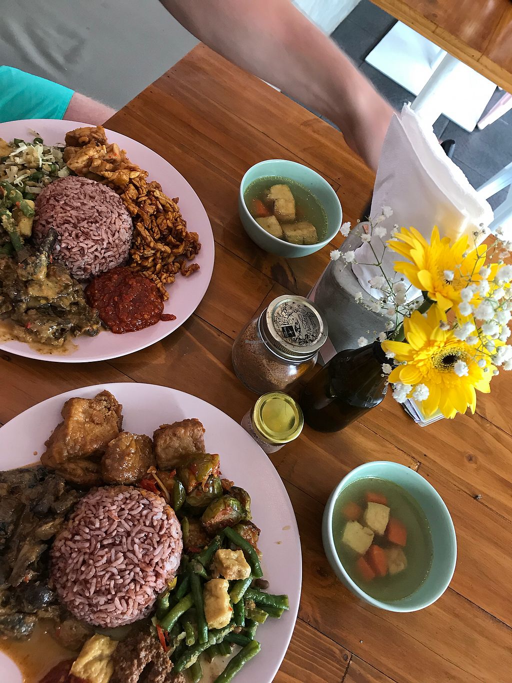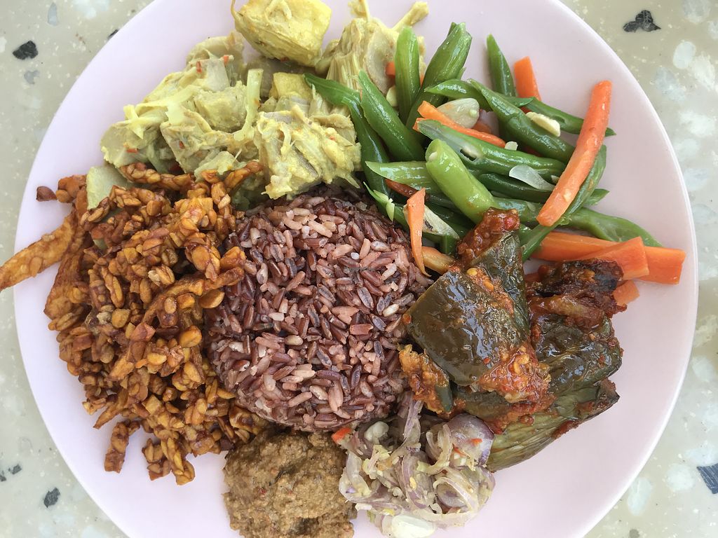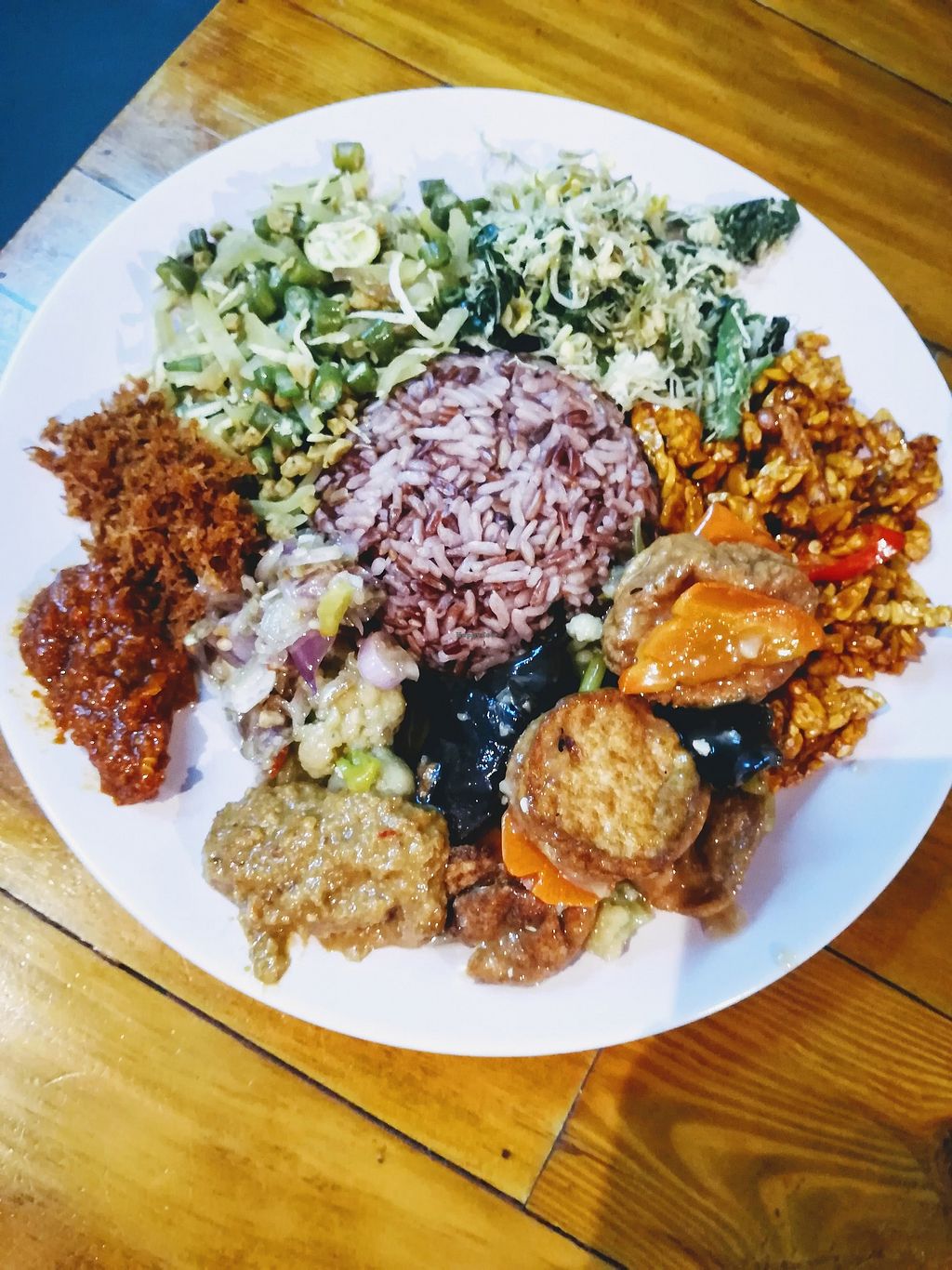 Hands down best vegan local cuisine. I can highly recommend the nasi campur with satay and peanut sauce, it’s so tasty. The staff is super friendly and their mylkshakes are next level. If I could, I’d come here daily. Definitely a must-go for vegans and non vegans.