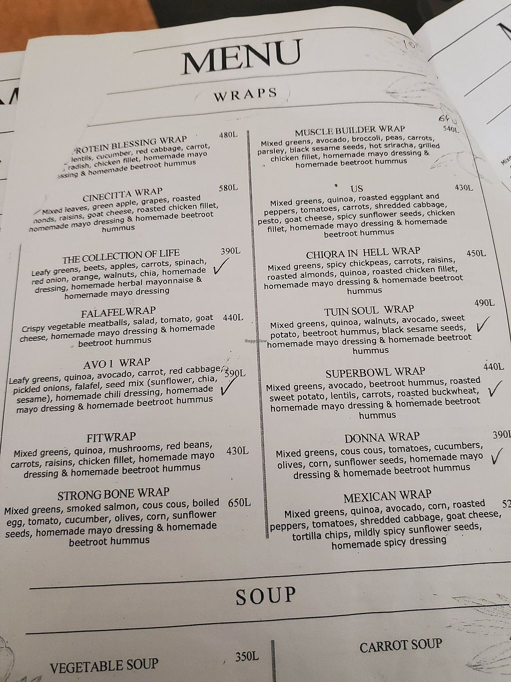 We went twice in our short time in Tirana as the food was so good. The veggie burger is vegan and very good. The wraps are really tasty, the vegetable soup and carrot soup are like veloutés and also delicious. The rice/quinoa bowls were quite big, more than enough for one person. We had 30 min waiting time for 4 people.