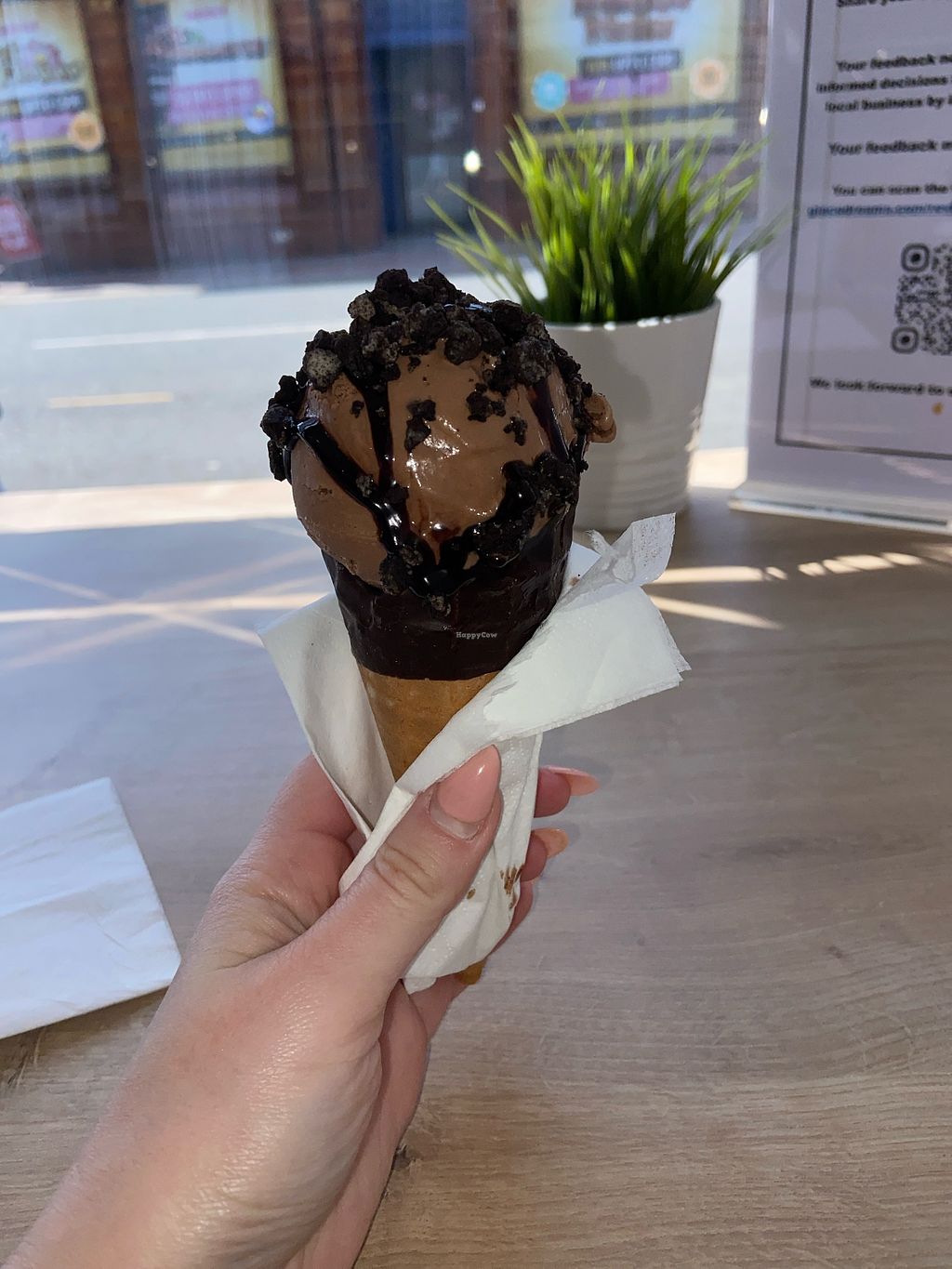 When I saw this place I thought it would be unlikely to have many vegan options - how wrong I was! A great selection of VG ice creams, plant milk for coffees, some desserts and milkshakes can be made vegan. So happy to have this round the corner! Staff were sooo friendly too