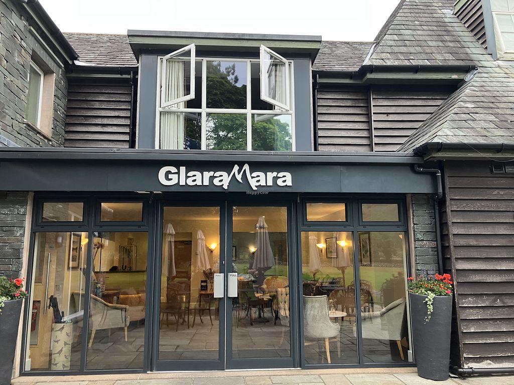 Serves meat, vegan options available. Hotel with bar and restaurant in the Lake District open to non-residents. Offers vegan choices such as soup, salad, fruit salad, filo pastry bake, roasted vegetables and vegan wines.
