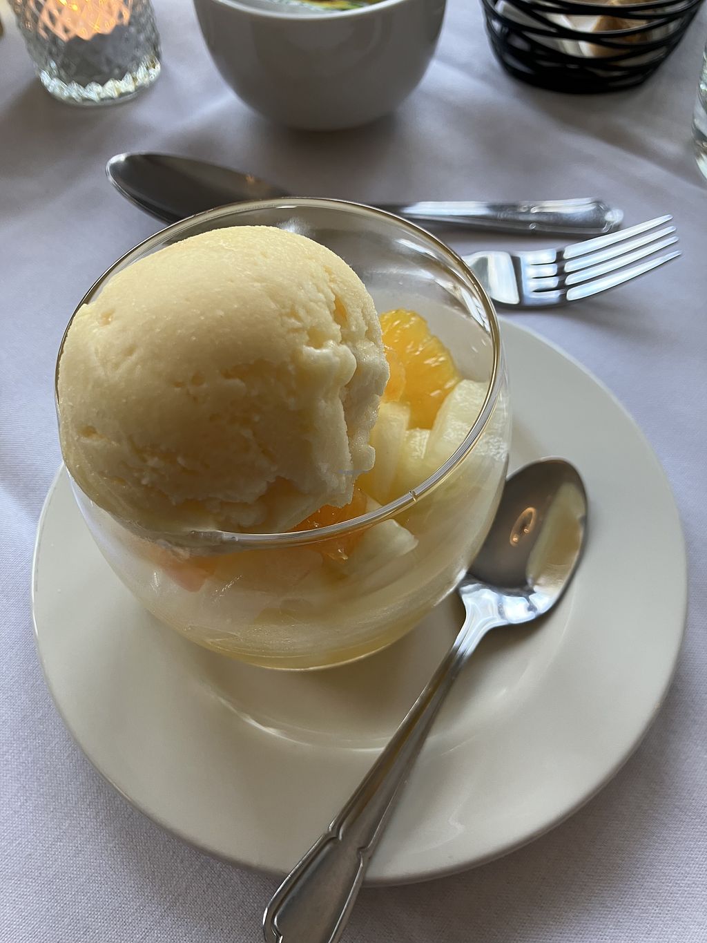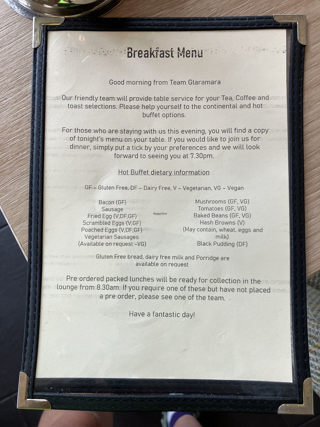The 3 course meal is served every day at 7:30pm (£40 pp). Bit expensive but good to have a place where you are looked after and more than burger n chips. Vegan wines also marked on the menu.