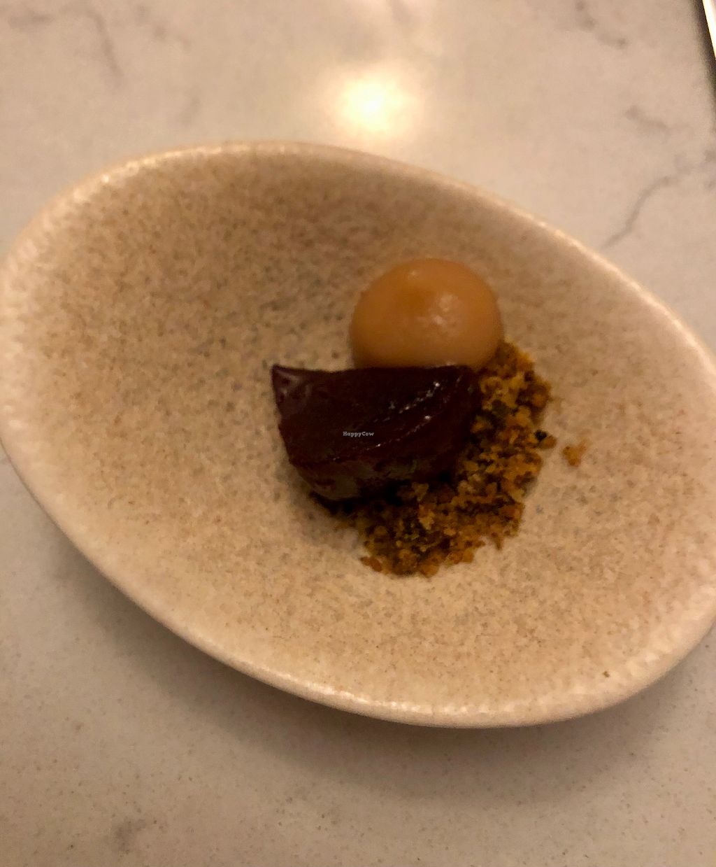 White asparagus alfajor (with dulce de leche) and licorice meringue.