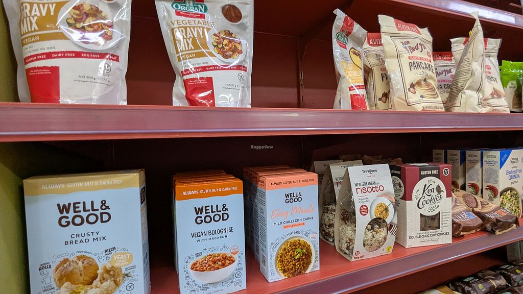 Nice shop, with a good range of products, many vegan. Small amount of fresh produce in the chiller near the back. Hot pot-pies, most are vegan. Chocolate, teas, snacks, cans and jars, personal care products. I bought a jar of interesting EveryMite, a vegan paste made in Australia from black sesame seeds. The warm, lentil-potato pie was really good - excellent sauce on the lentils. Juices available also.