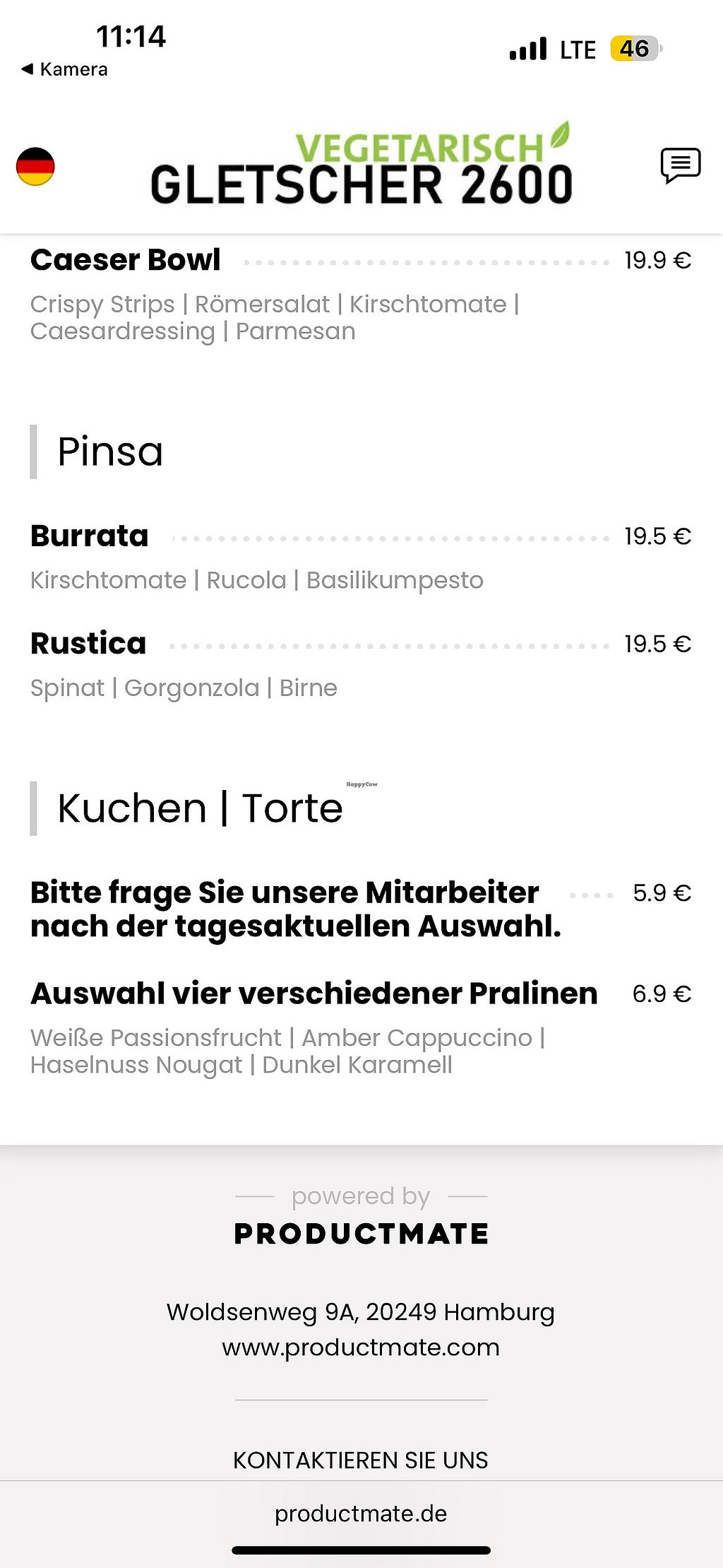 Cons: Zu wenige vegane Optionen , Keine Auszeichnung der veganen pikanten Speisen