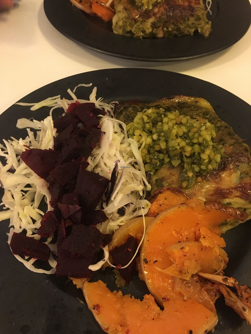 Delicious vegan lasagne! And yummy sides. Friendly service. Nice, casual atmosphere. Chicken option for friends or family who are not veg.