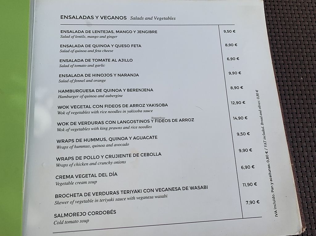 The vegan menu