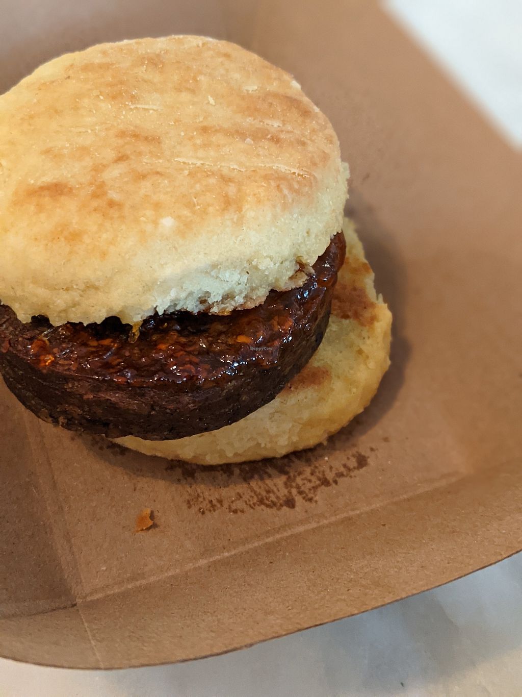 Read moreI got the hemp seed sausage biscuit (cheddar scallion biscuit). Everything was awesome and the staff inside are cool, friendly, and helpful.