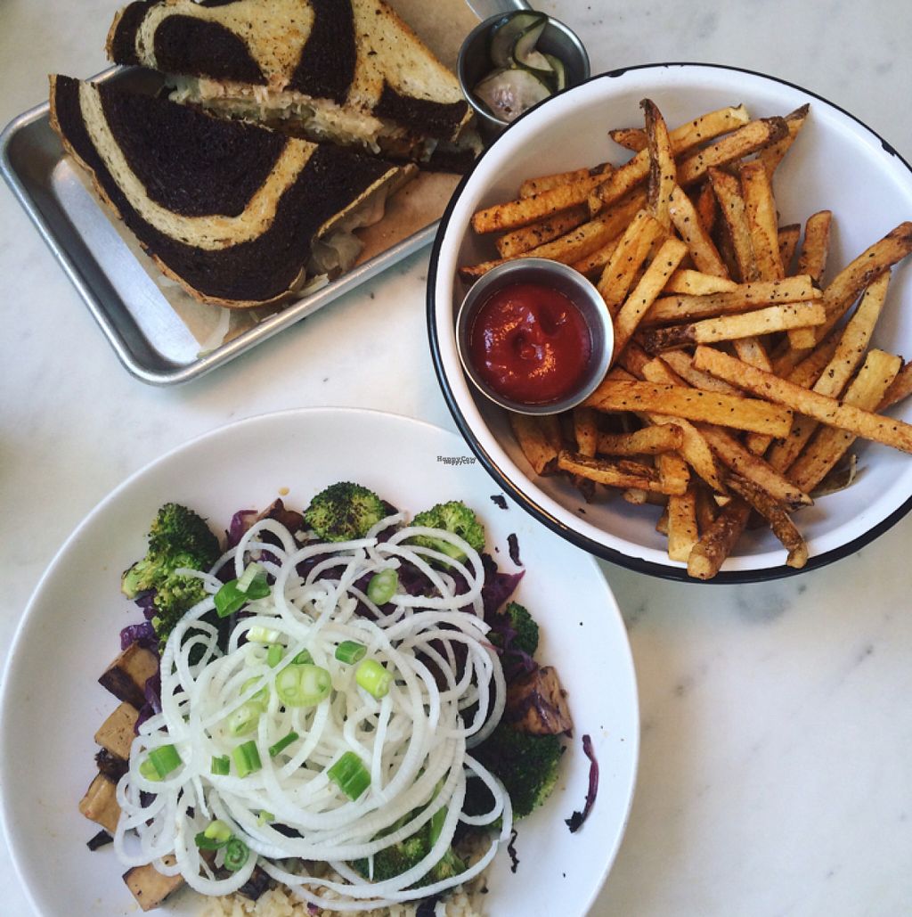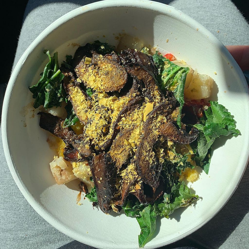Ordered the Reuben, Southern Grit Bowl (sub home fries for the tofu scramble), and side Caesar Salad. The Reuben was good but found it to be a little bit more sour than other vegan reubens I’ve had. The grit bowl was delicious - it was the first time I ever had grits and I really enjoyed them. Was not impressed with the Caesar salad and it also was missing the croutons that I believe it was supposed to come with.