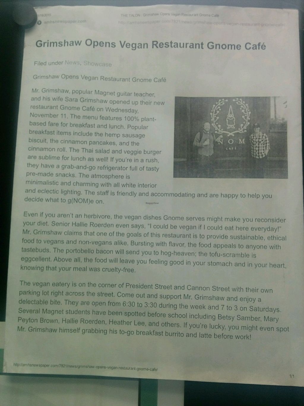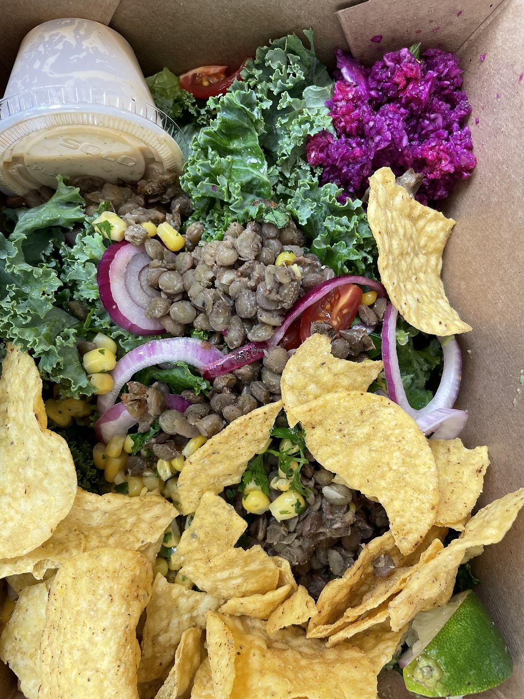 This place is fantastic! I went with several omnivores, all of whom also appreciated the excellent food at Gnome. I had the taco salad, which was super fresh and full of tasty ingredients and the Reuben, which was equally tasty.