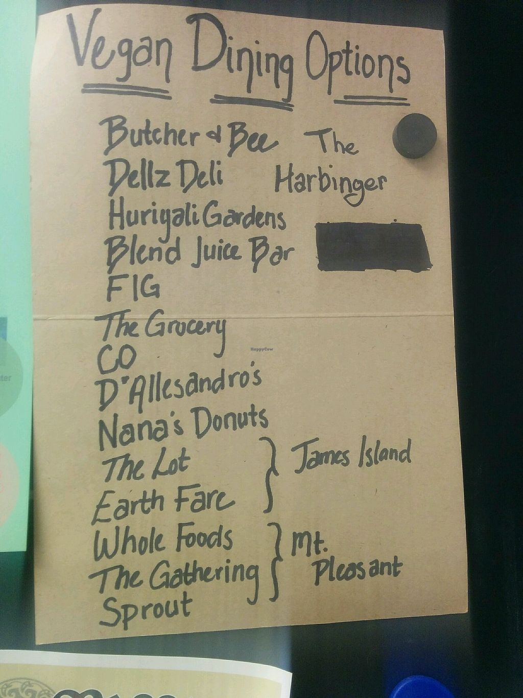 A 100% vegan restaurant located downtown near MUSC. Limited seating. You can order in advance online. Check with them about local delivery. Confirmed closed, Sept '22.
