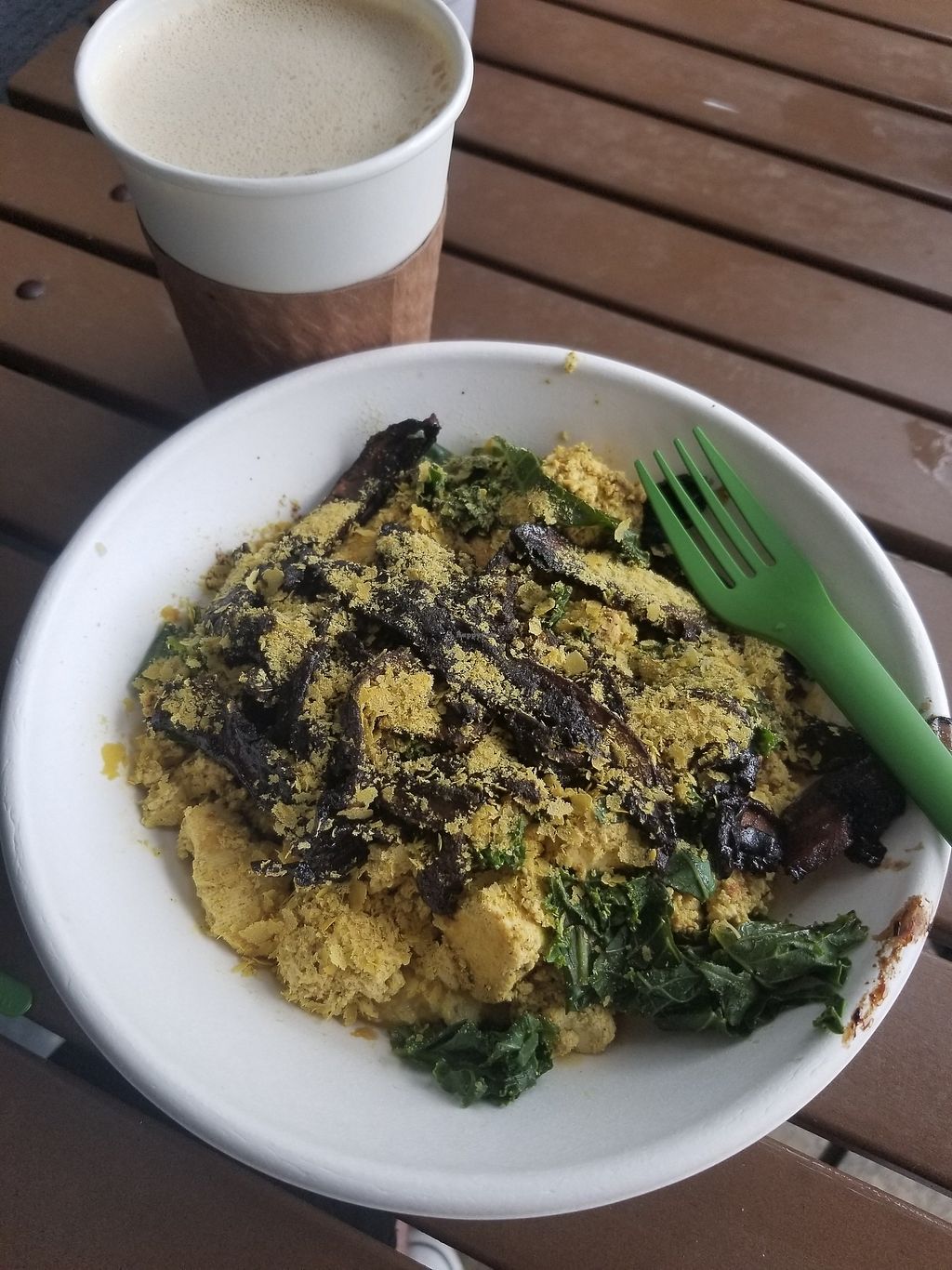 So glad we found Gnome Cafe for breakfast before heading out. My husband got the tofu scramble on an everything bagel. The portobello bacon is amazing!