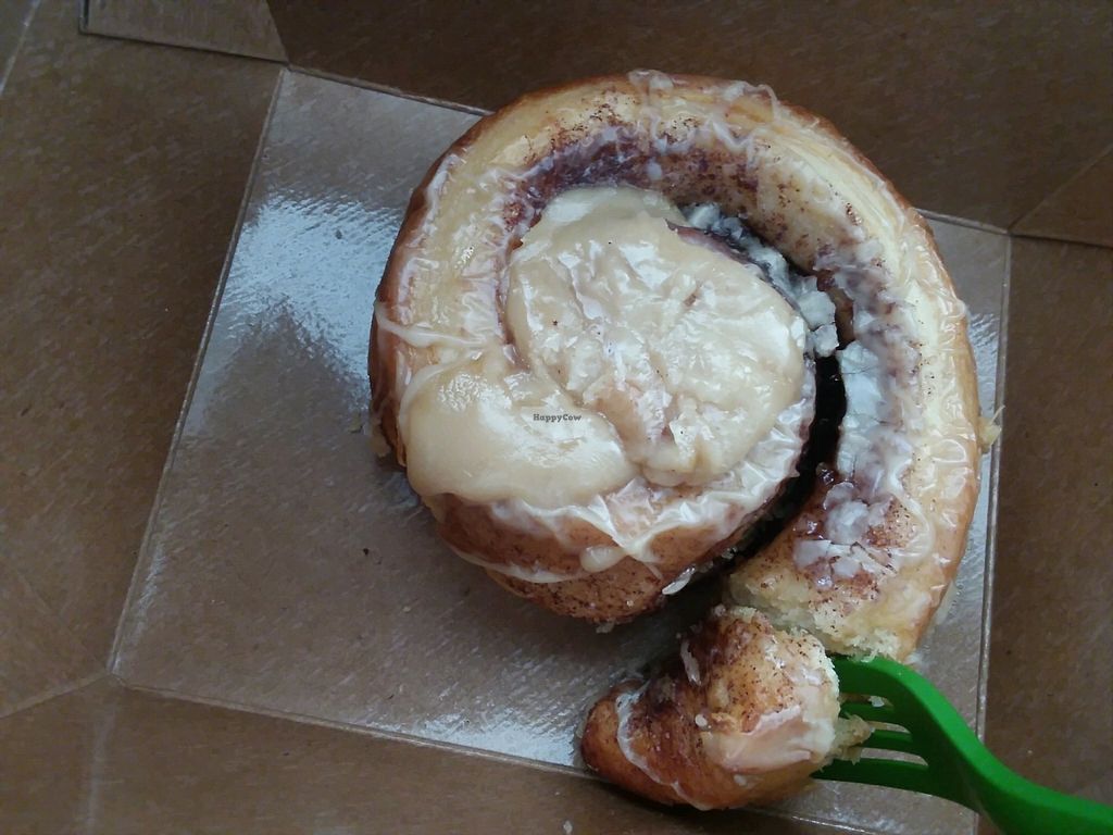 Super popular place, crowded but not in an awful way. Steady stream of folks coming in for take out. Got the special which was a BLT w/Avocado. Portobello mushroom bacon was wicked good. Came with hand cut real fries --> seems weird to say real, however in this day and age when sometimes the fries are an amalgamation of potato and other stuff, these stood out. Just potatoes! And, to top off the awesomeness, got a sticky bun. To die for. Period. Loved this place. Glad I don't live near the sticky buns or I'd be a fat vegan!