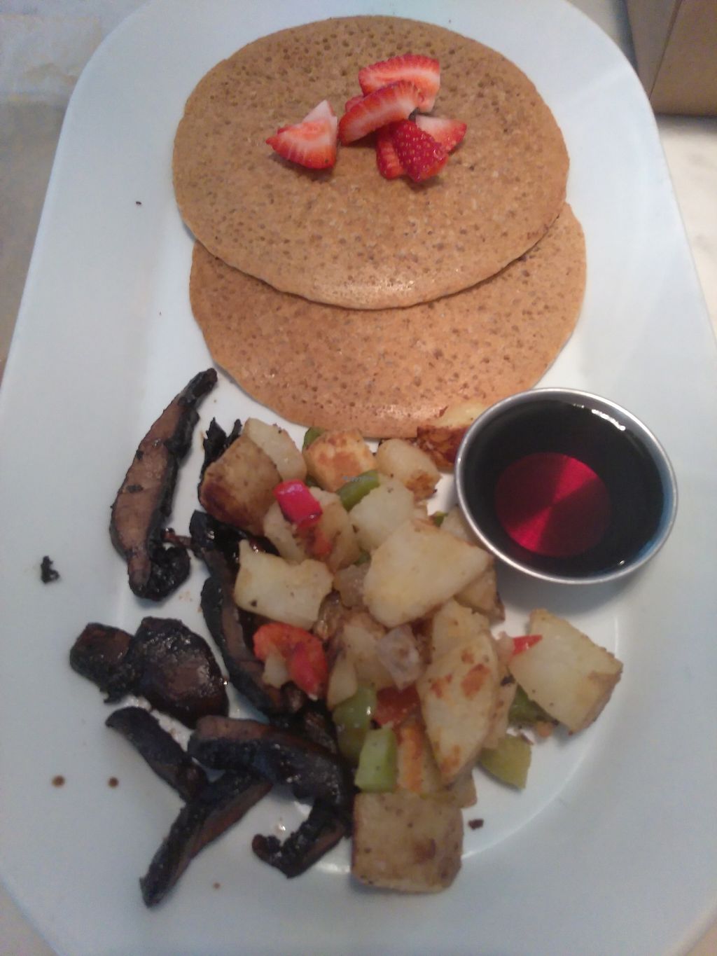 this place is good. i got the cinnamon pancakes and they were delicious! my boyfriend got the fried seitan sandwich and he loved it (i loved it too, he gave me a bite) Highly recommend. great food and quick service.