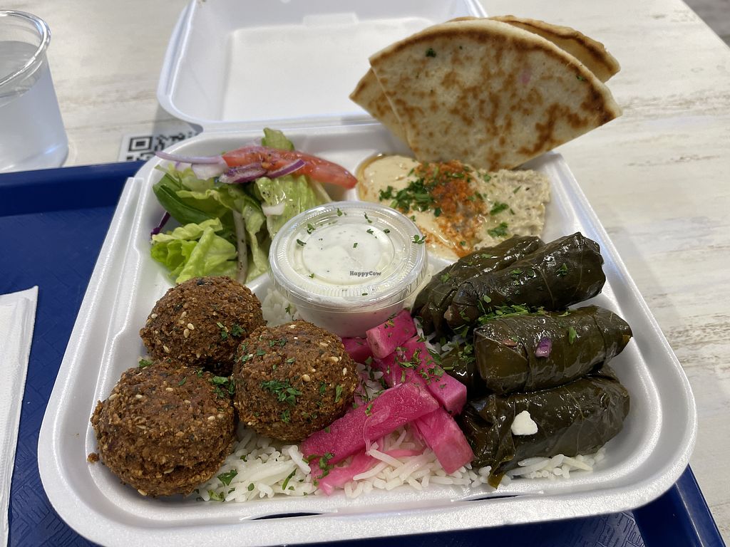 my boyfriend and i got the vegan plate and split it, the falafel is very flavorful and the hummus is high quality, the people working here are really nice and helpful when asked questions about the menu and vegan options. the garlic fries are SOOOO good!!
