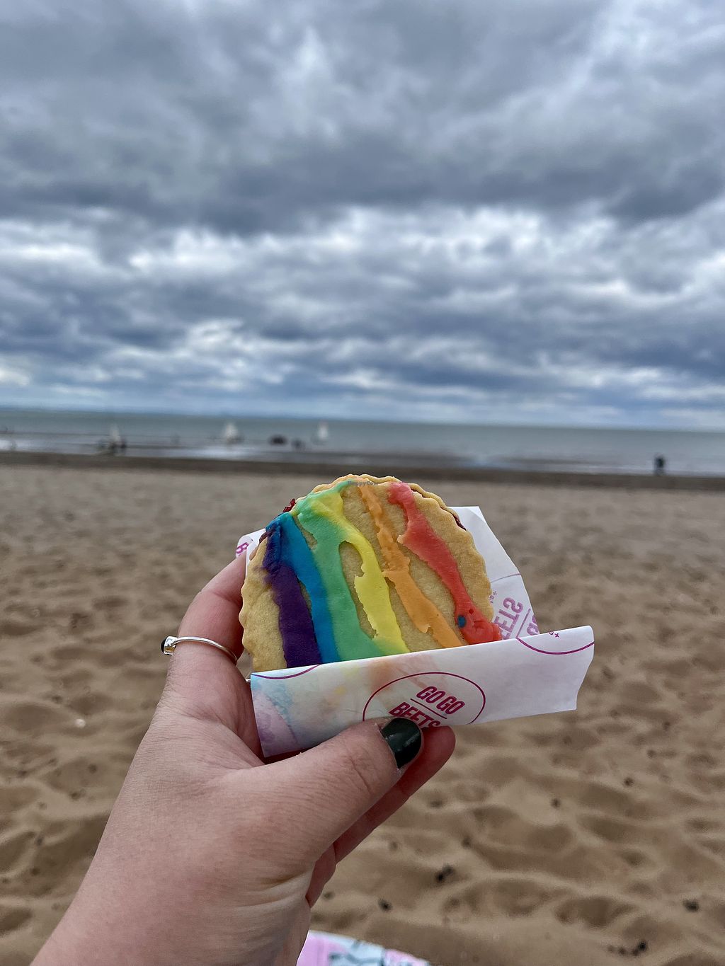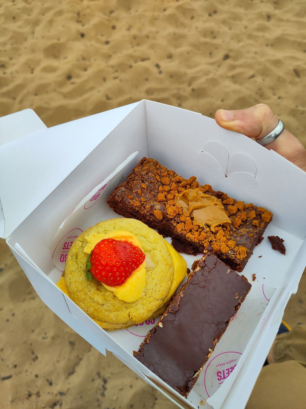We got a couple brownies and a truffle, and ate them sitting on the wall of the promenade looking at the beach. The biscoff brownie was particularly delicious.