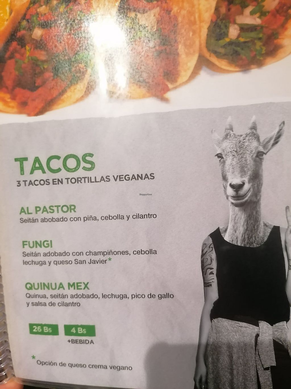 Great place to eat fast food expect hot dogs, nuggets, tacos, burgers and the like. Tastes the tacos al pastor and a bean burger (you can choose the patty quinoa, beans, chickpeas). Food is flavorful, abundant and sooo cheap.