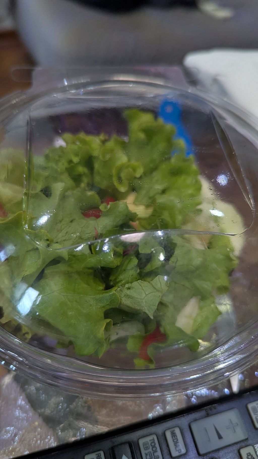 Nice tasting falafel, the salad was fresh and crispy, Ceasar dressing tasted good. Crispy anf nice bread around it.