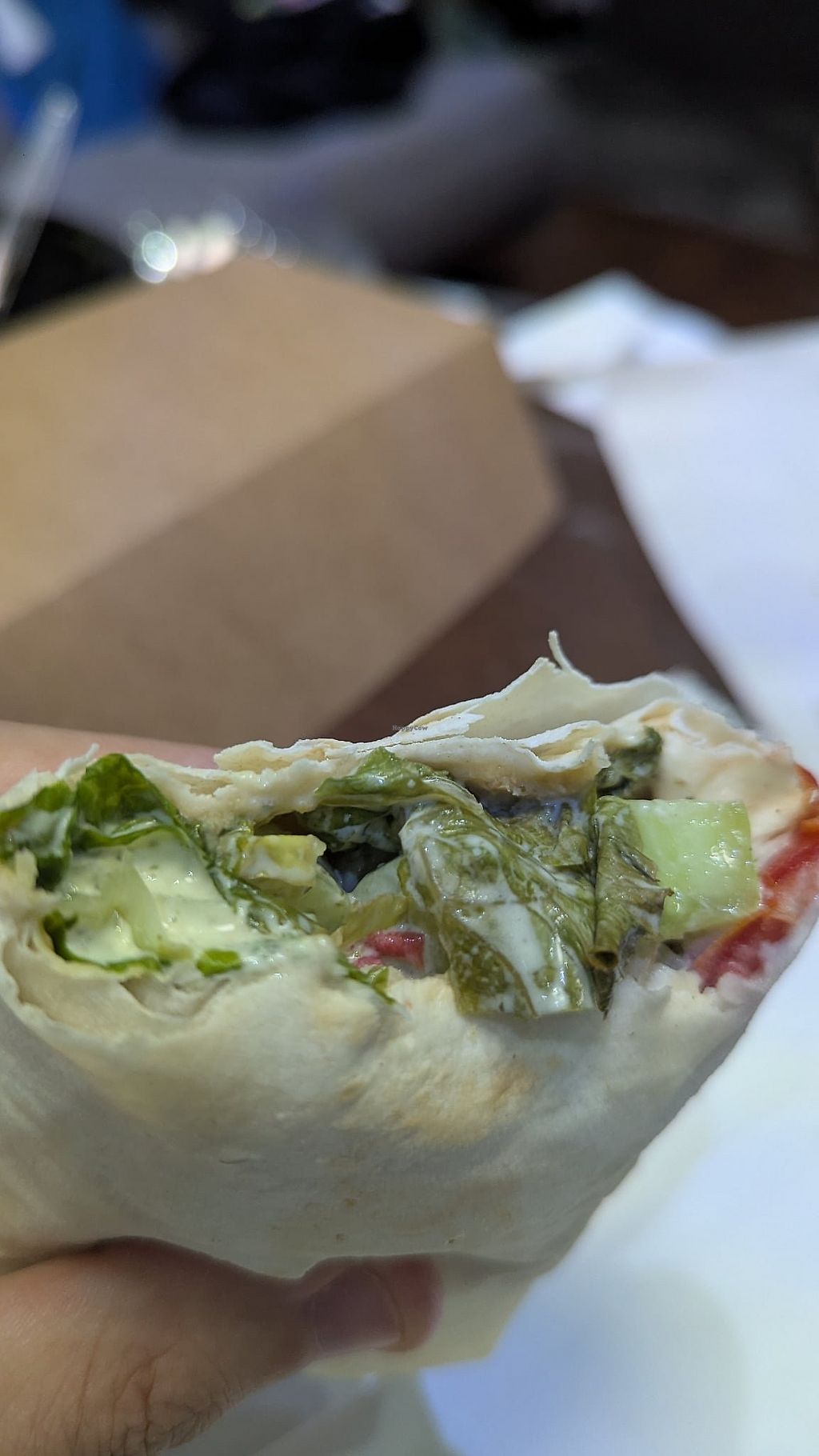 The food was tasteless and the ingredients did not seem fresh. Carrot salmon for example seemed very old. Falafel was plain, even a little salt would have elevated the wrap.