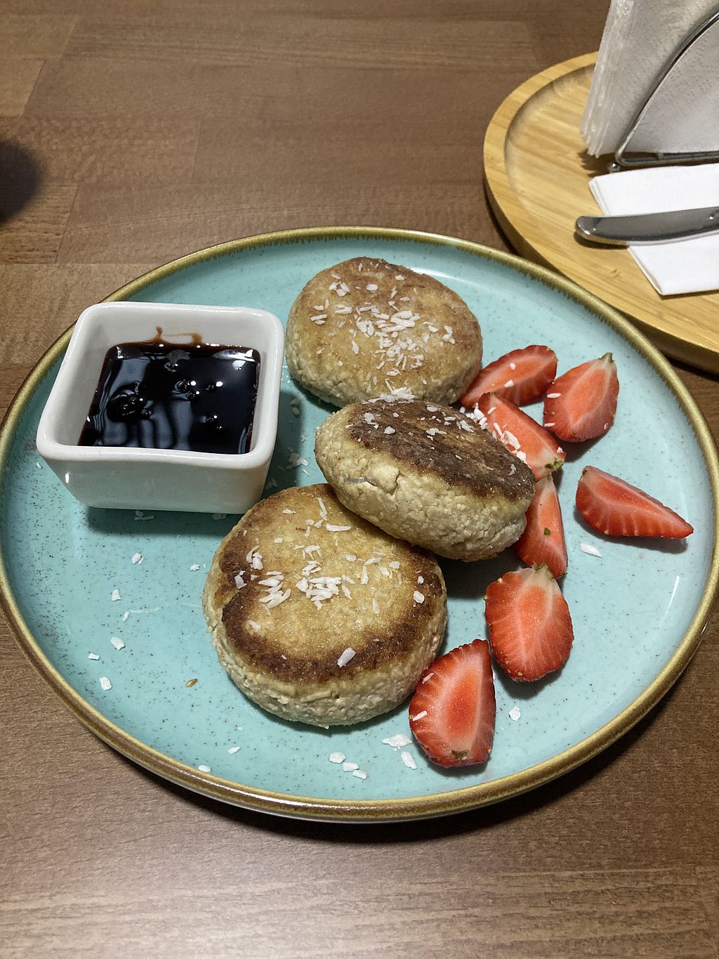 We had tofu scramble and oatmeal pancakes, food was good but service was a little awkward. Meals also came out at different times so we didn’t eat together 😆