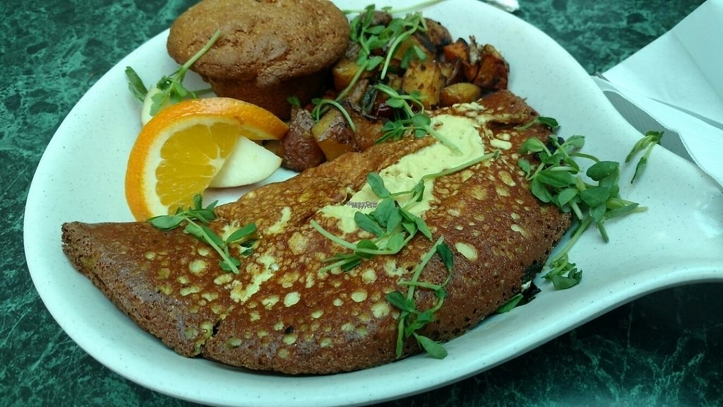 Breakfast burrito (Spanish tofu filling, sausage and roasted jalapeños…