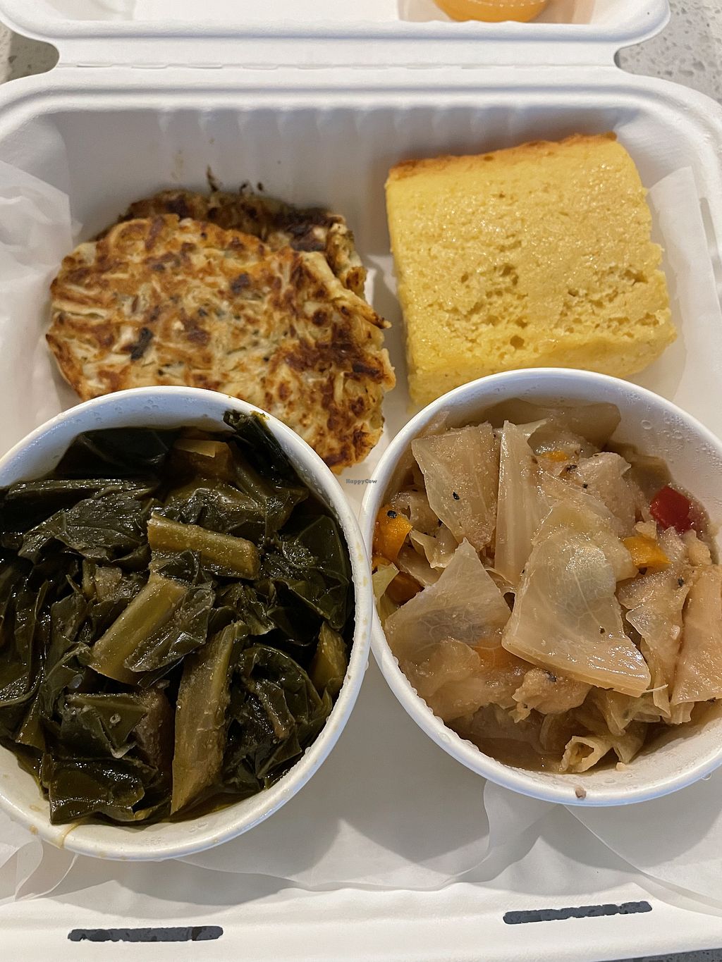 This place is 🔥! Vegan soul food at its finest. Delighted to see the portions were huge and filling. Flavors are top notch. We went here for lunch and were barely hungry for dinner. I don't know how they make their cornbread and fries but both are heavenly. The staff is also super friendly. Will definitely be back next time we are in Wilmington.