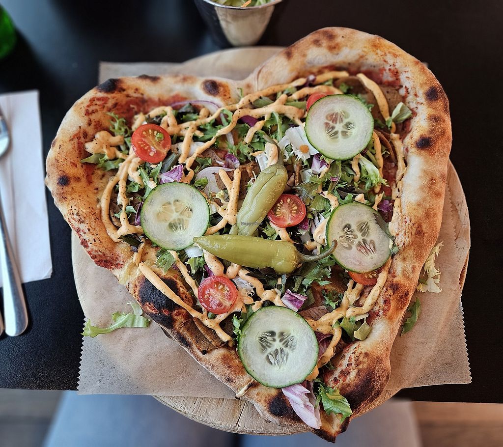 Vegan kebab pizza with no sallad on top