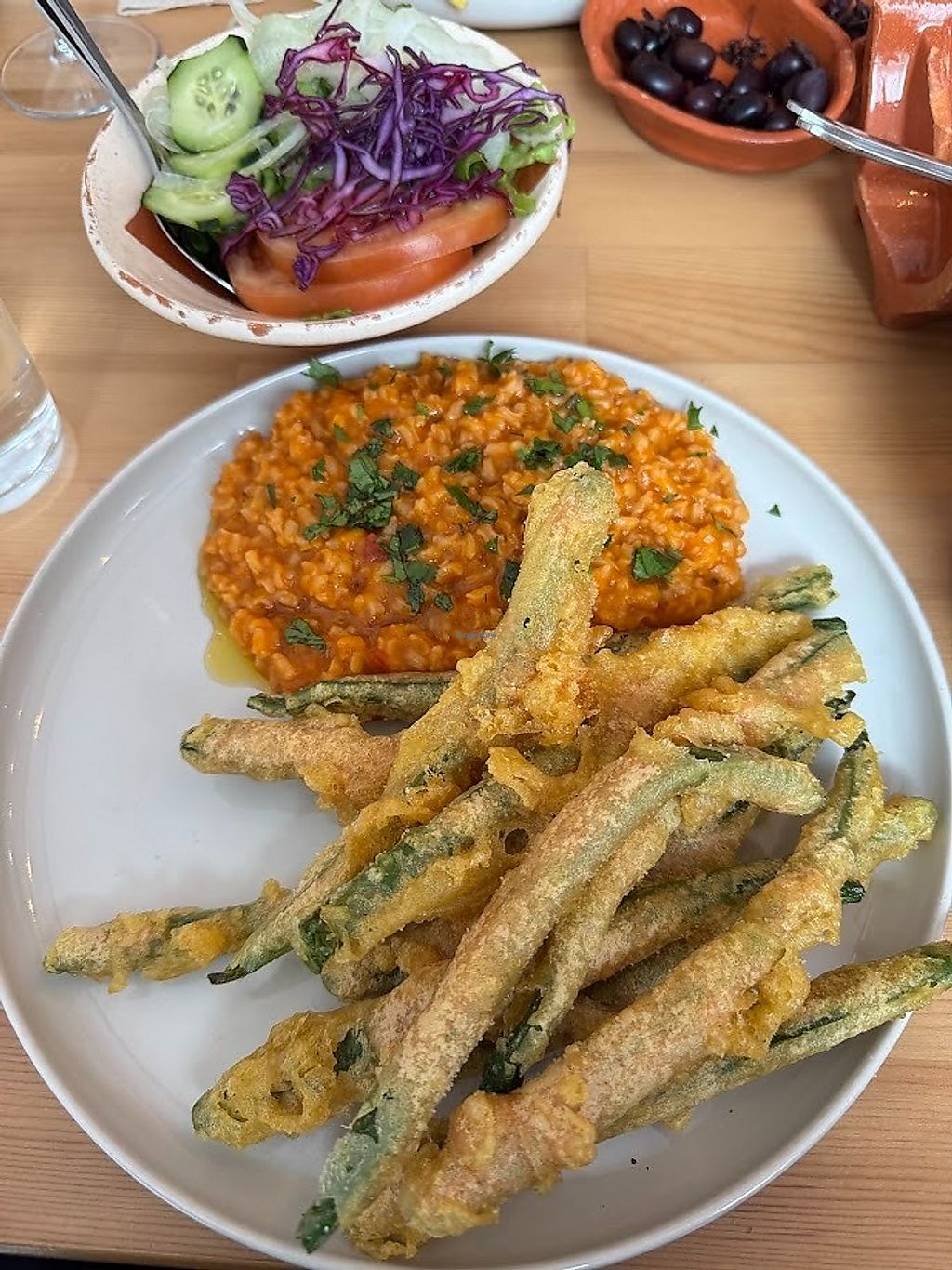Peixinhos da horta com arroz de tomate e grão/Green beans deep fried i…
