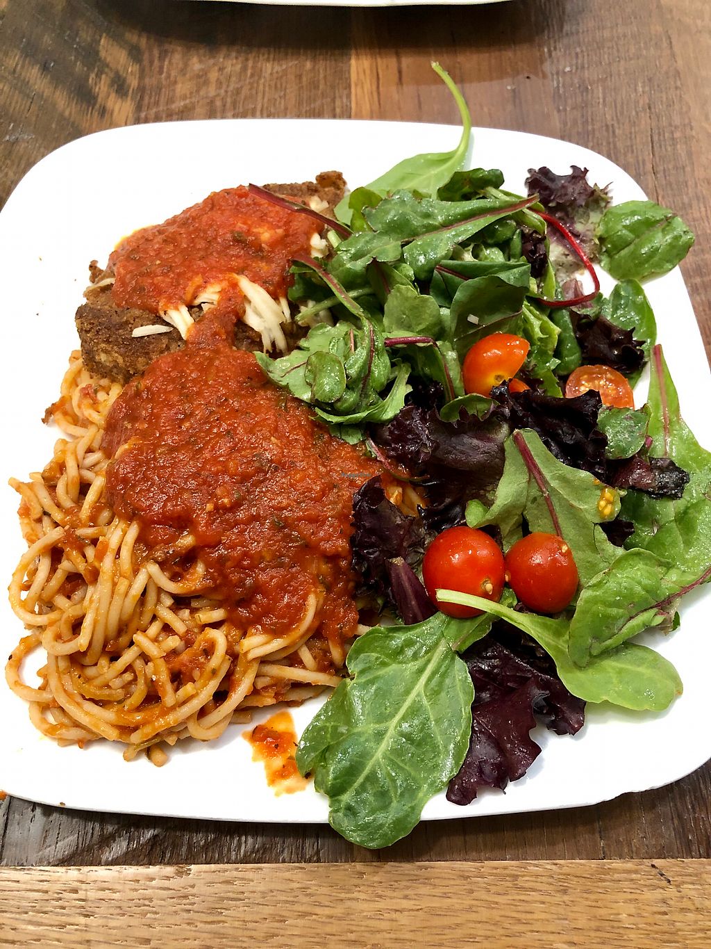 My friend & I were on vacation and were so happy to find this cute little cafe in Santa Monica. We were equally amazed by the extensive menu & the great customer service! We ordered a pesto pizza & spaghetti and meatballs to share. Both were amazing, but the spaghetti and meatballs were the best I've ever had! We left feeling very happy due to both the amazing service and also the great food!