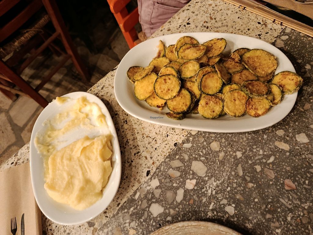We went for dinner during sunset and it was the best place to watch it. It was very busy for October and people were waiting for tables. We ordered around 5 or 6 of the labelled vegan dishes and it was plenty of food - too much. Fried courgettes and aubergines were so good and light.