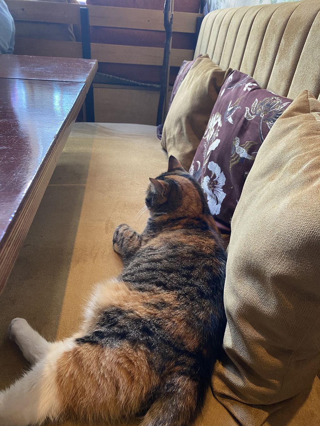 Very nice restaurant with beautiful interior. The staff was very friendly, the food very tasty & the highlight was the sleeping house cat at our table.