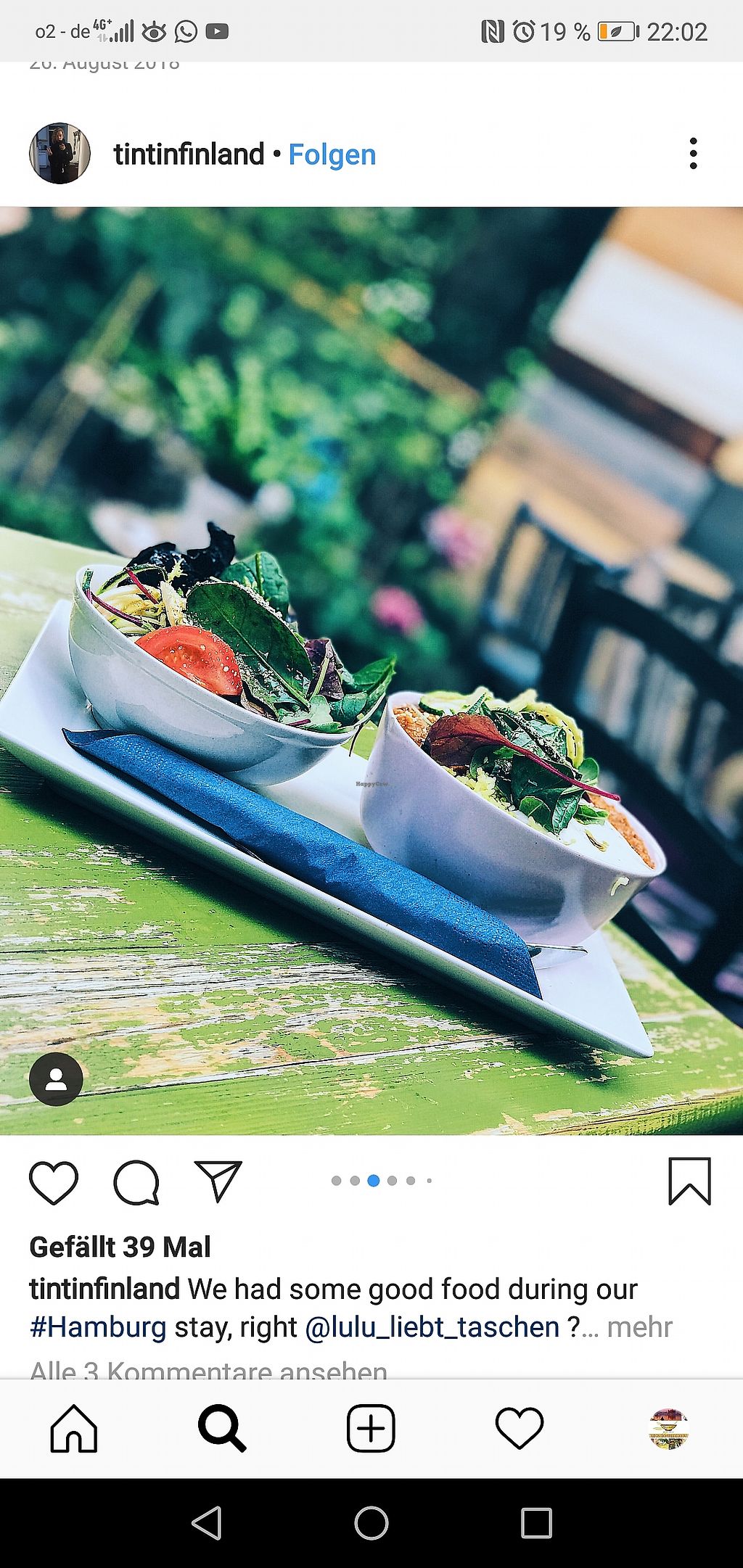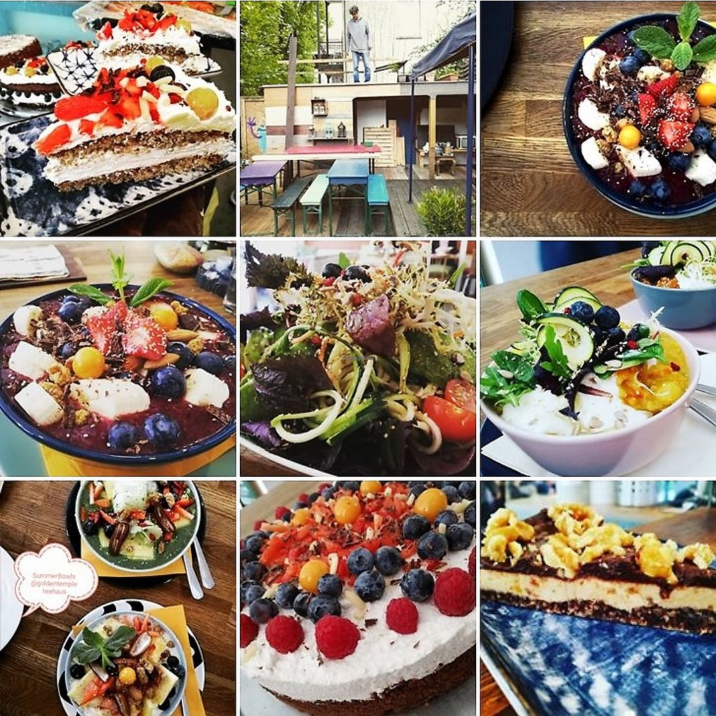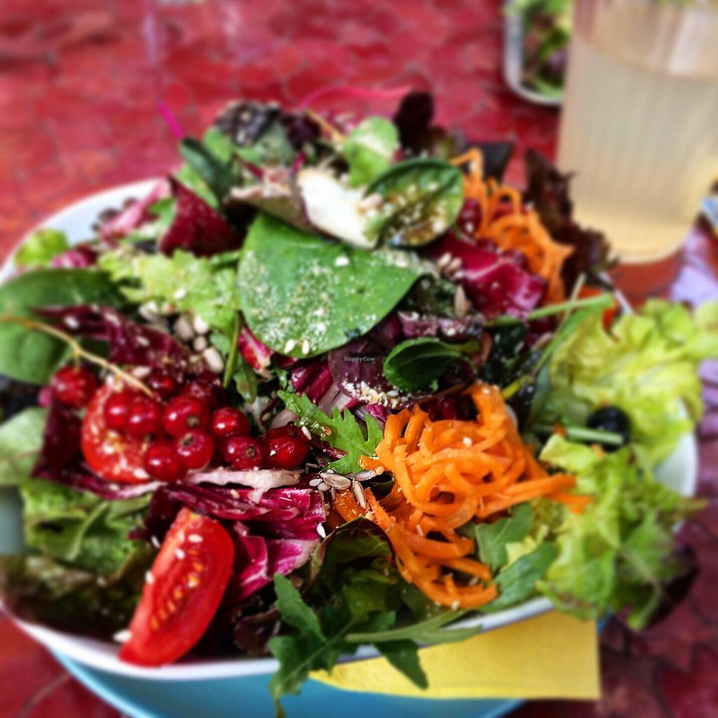 Wonderful vegan quiche with a big salad, and curcuma - vanilla latte