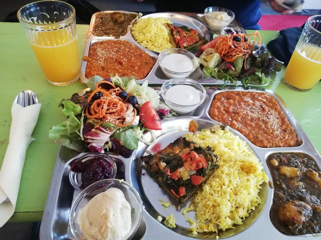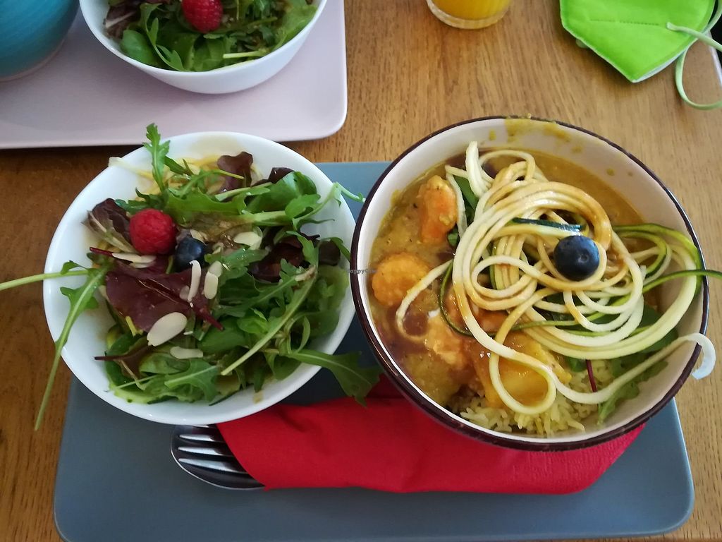 Tagesmenü Tempel Thali - zwei versch. Currys mit Reis, Salat und eine …