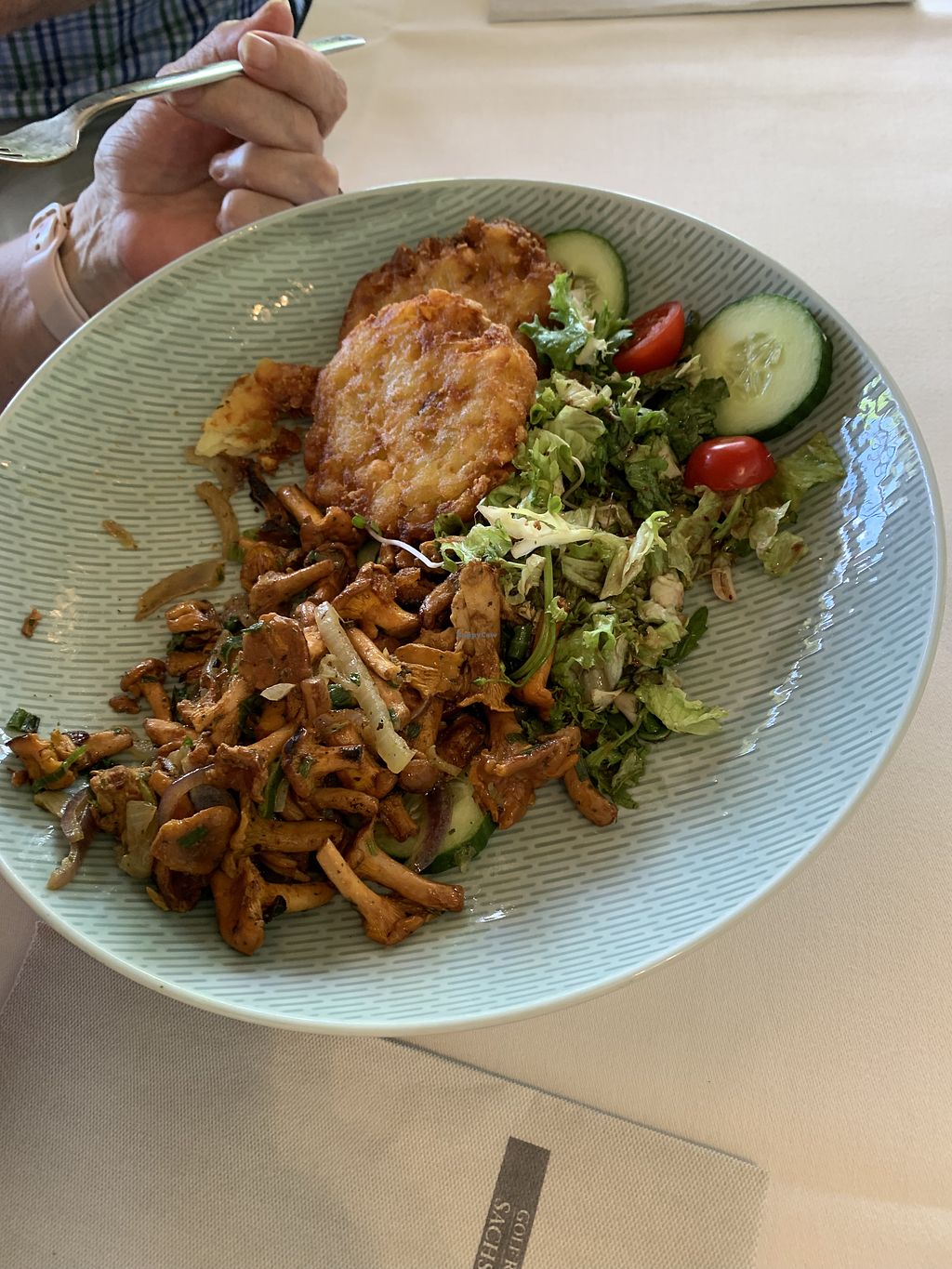 Lacto Ovo Beer/Wine Take-out German Honey Non-veg Serves meat, vegan options available. Restaurant by a golf course. Vegan choices are labeled and include tomato soup, wok-fried vegetables, and fried mushrooms. Open Tue-Sun 12:00-20:00. Closed Mon. More