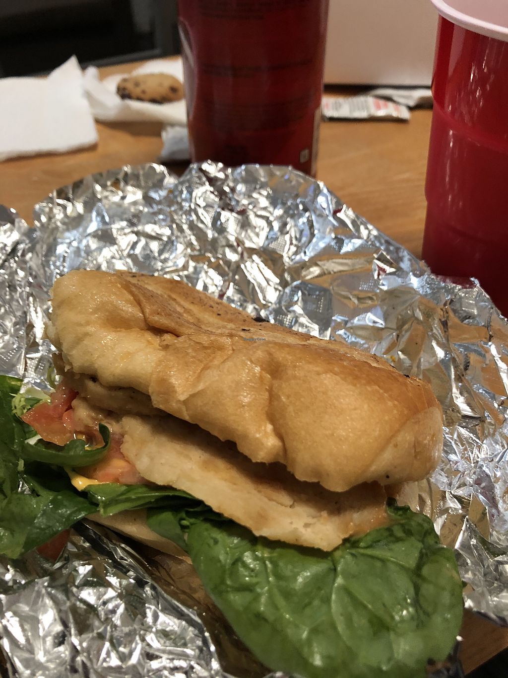 The Chic Fillet with side salad. It’s Dr. Praeger’s