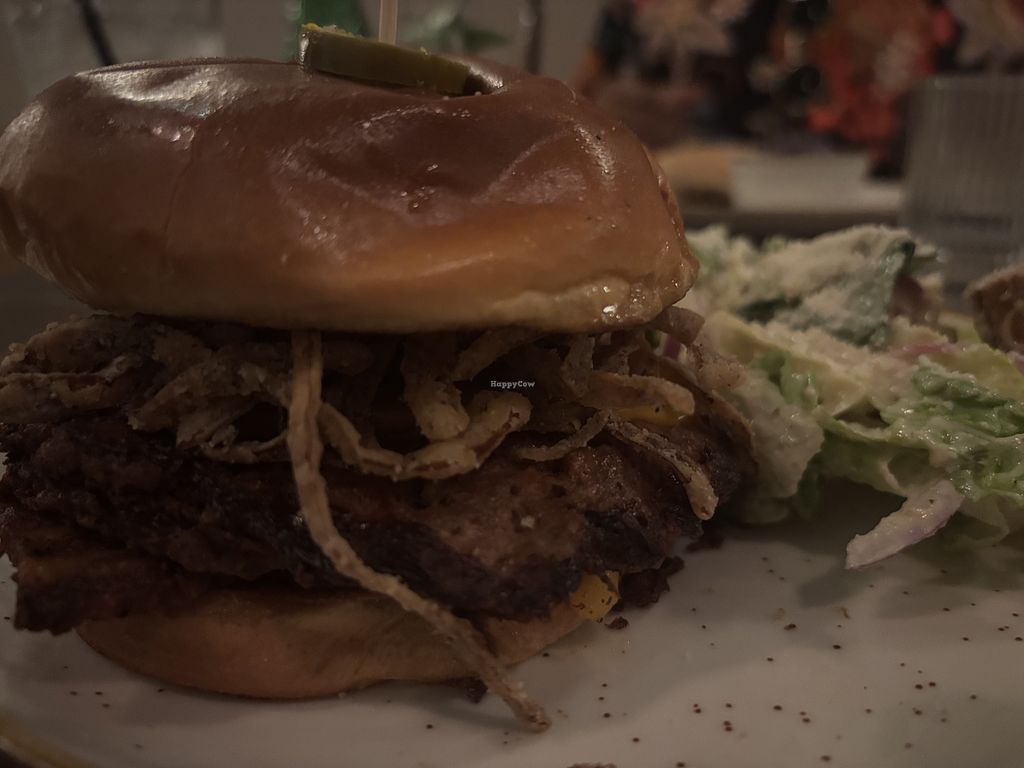 Tofu burger with Indian spices and side salad.