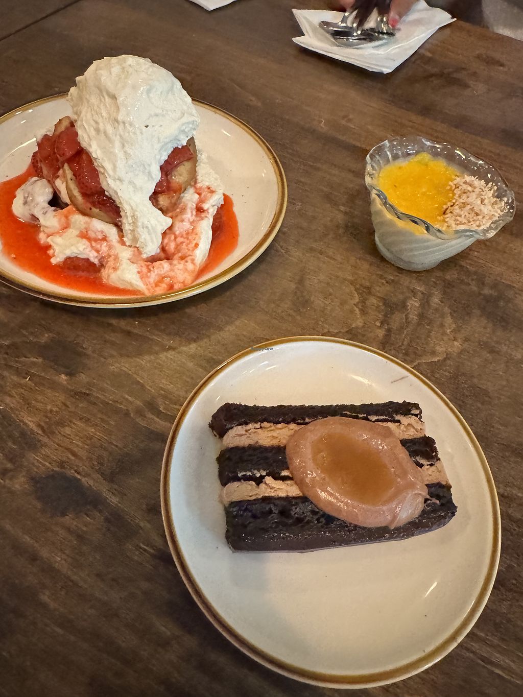 Strawberry short cake (upper left), Panna cotta (upper right), chocola…